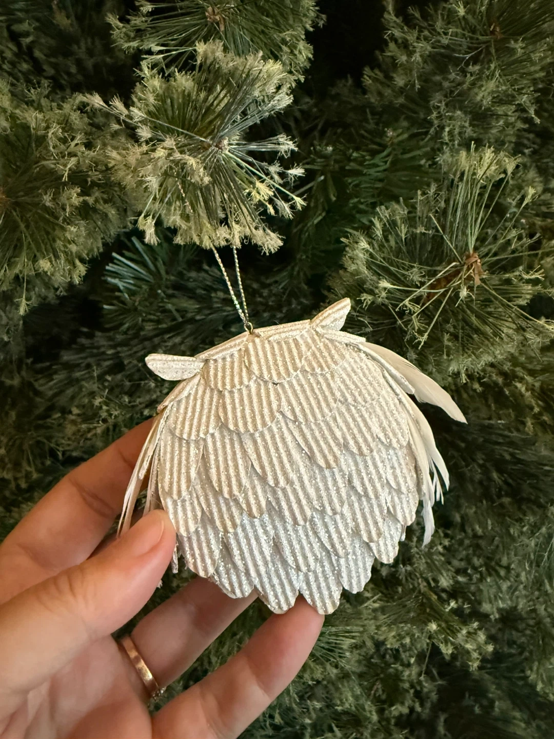 Adorable owl with a tiny beak and watchful beady eyes. Add some wisdom and vigilance to your holiday decor