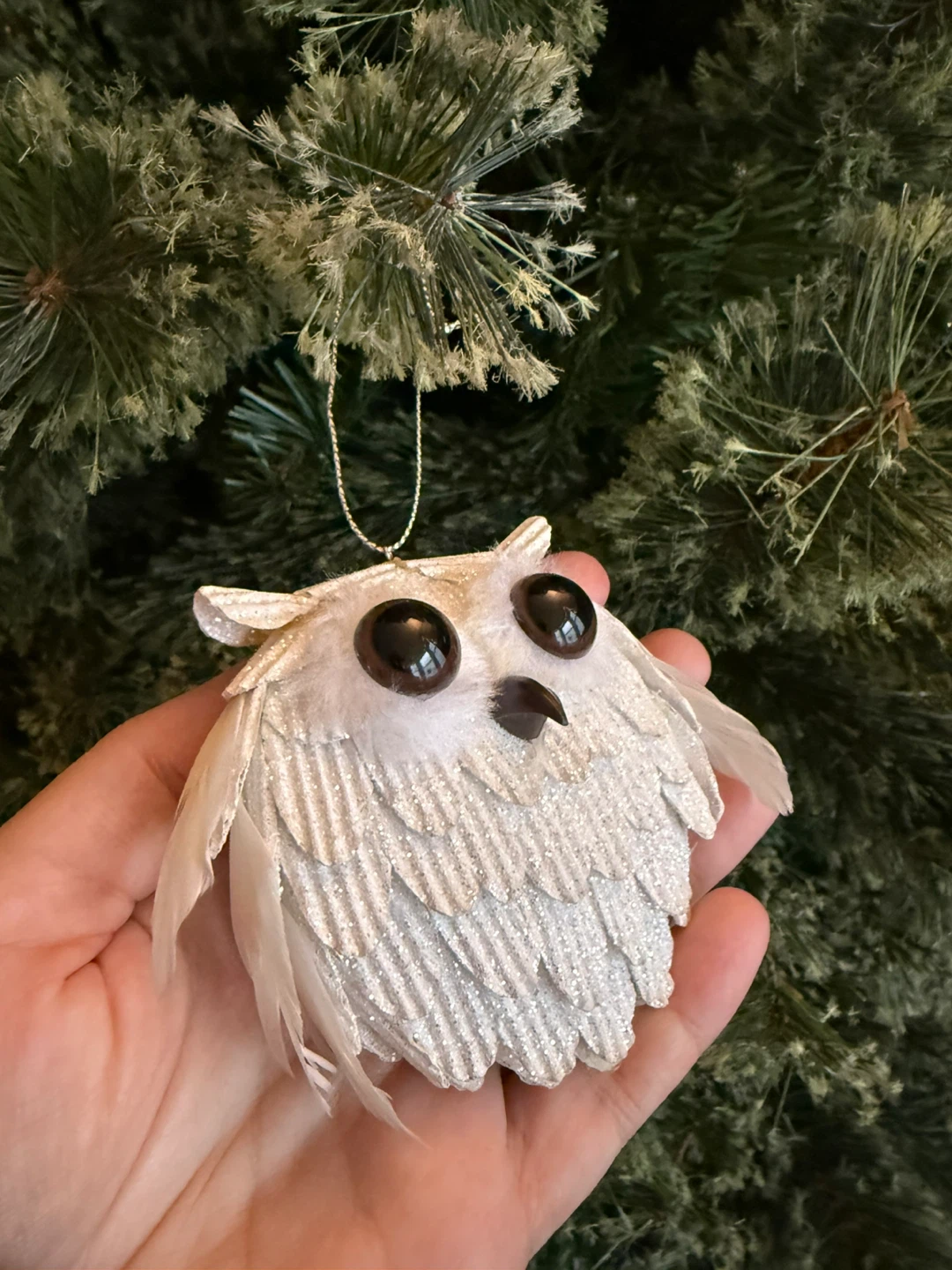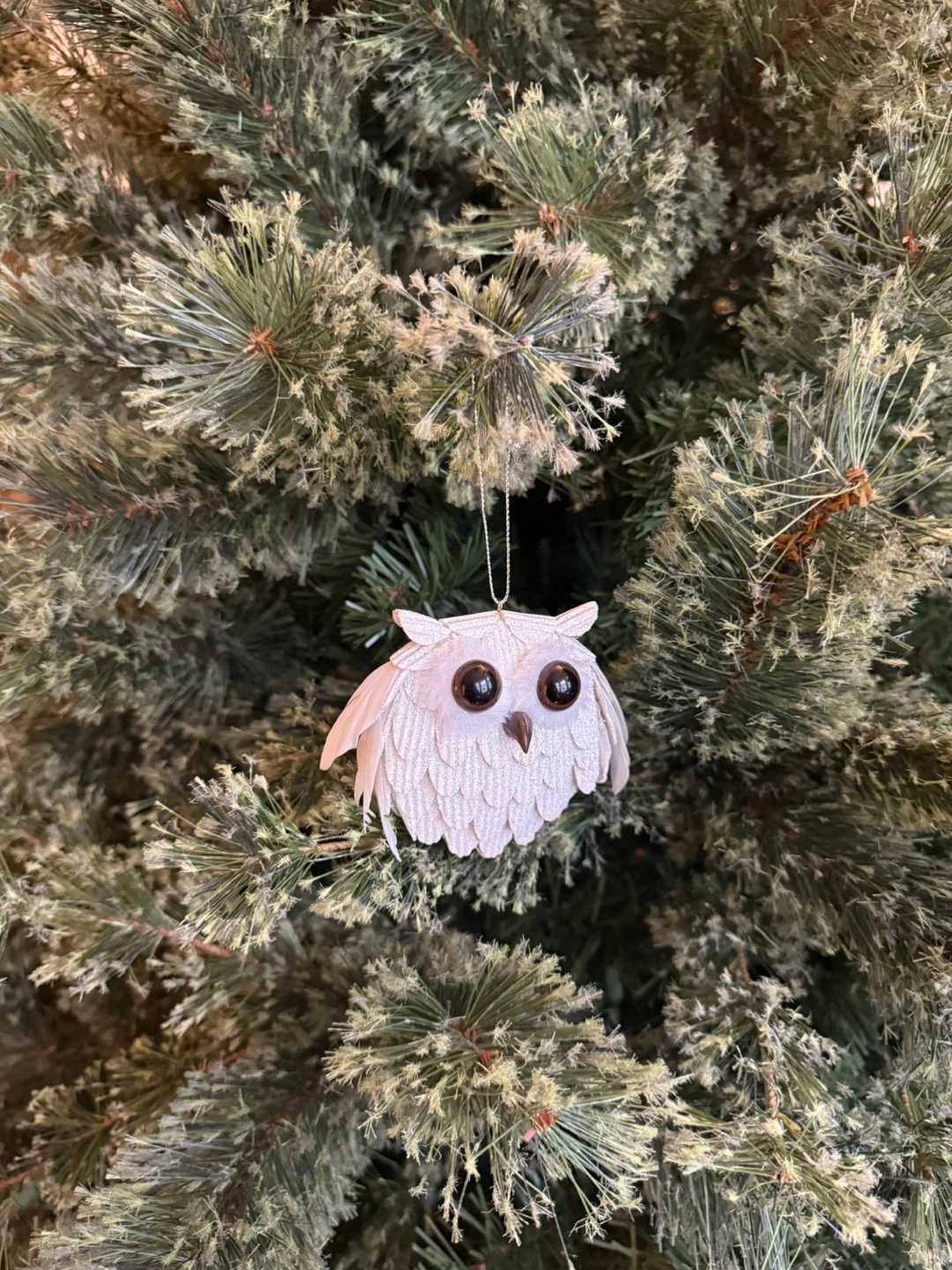 Adorable owl with a tiny beak and watchful beady eyes. Add some wisdom and vigilance to your holiday decor