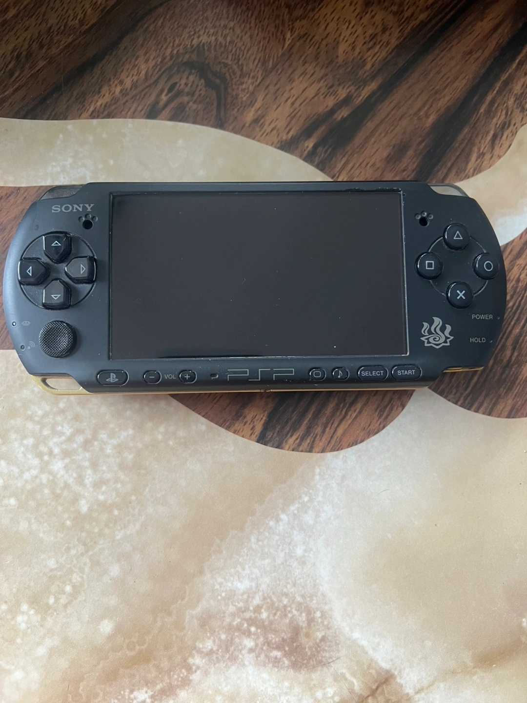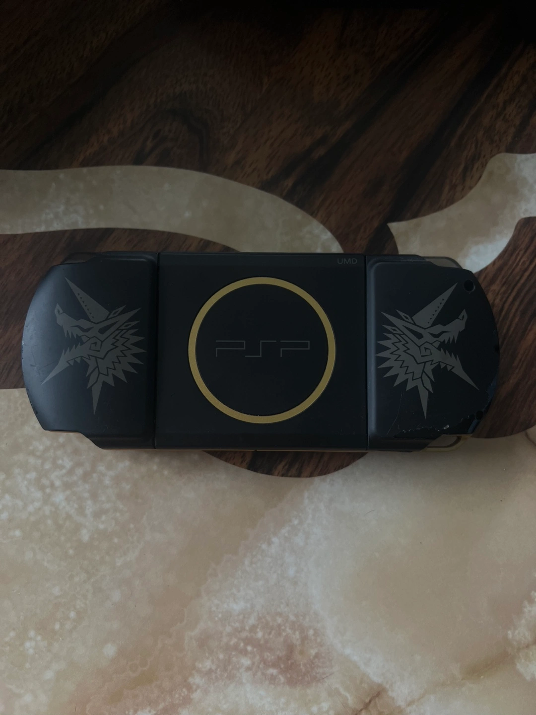 Sony PlayStation Portable 3000. Monster Hunter Freedom Unite special edition. Black with gold accents. this is a limited edition and it is being sold for 400+ on ebay.
