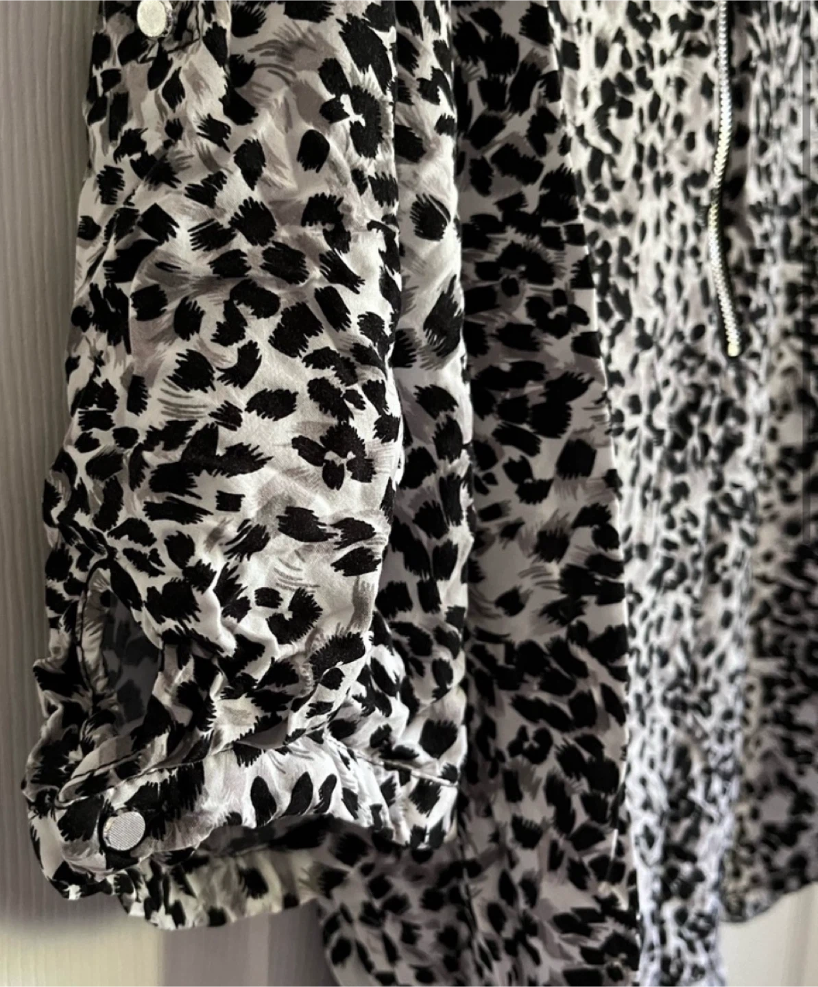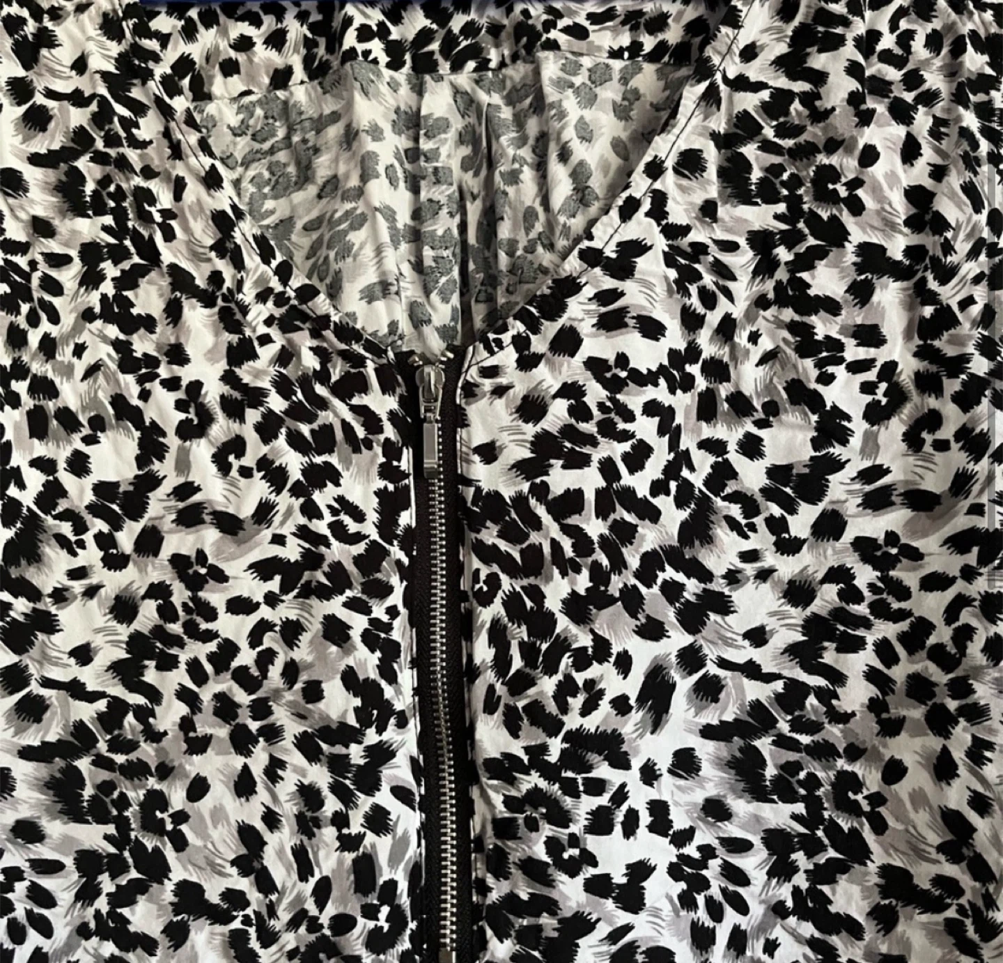 Here's a stylish animal print blouse from Reitmans! It features a zip-up front and 3/4 sleeves, perfect for a casual yet chic look