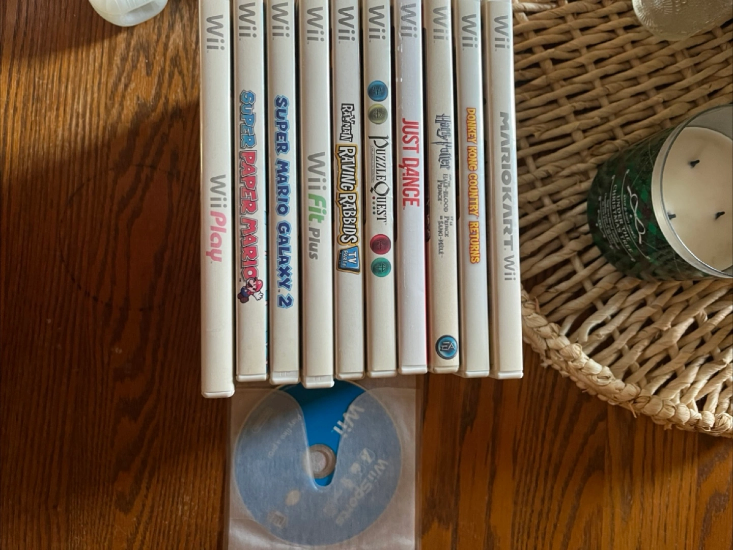- Wii games: Mario Kart Wii, Just Dance, Wii Fit Plus, Super Mario Galaxy 2, Super Paper Mario, Raving Rabbids, Donkey Kong Country Returns, Harry Potter and the Half-Blood Prince, Wii Play, Wii Sports, Puzzle Quest
