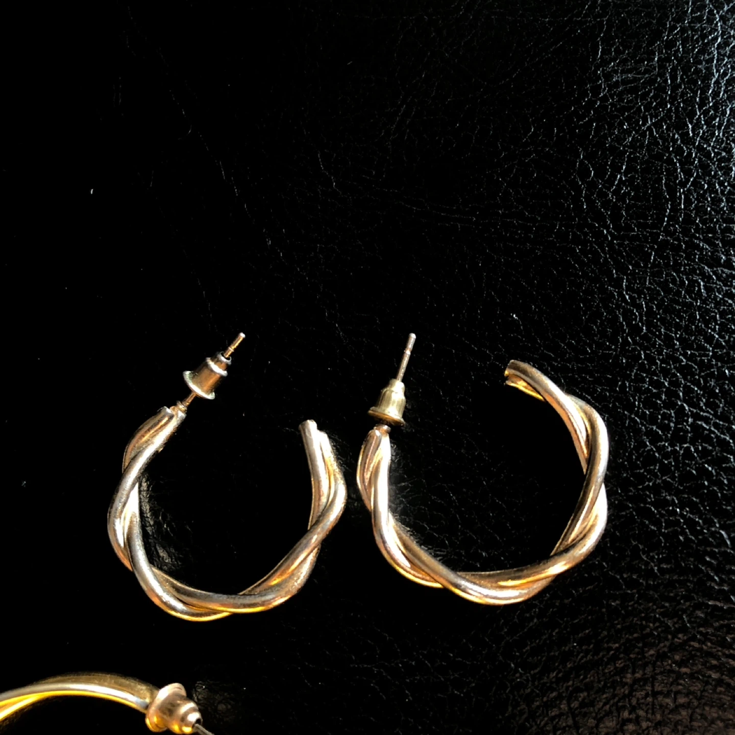 Twoo Pair Gold Tone Hoop Earrings