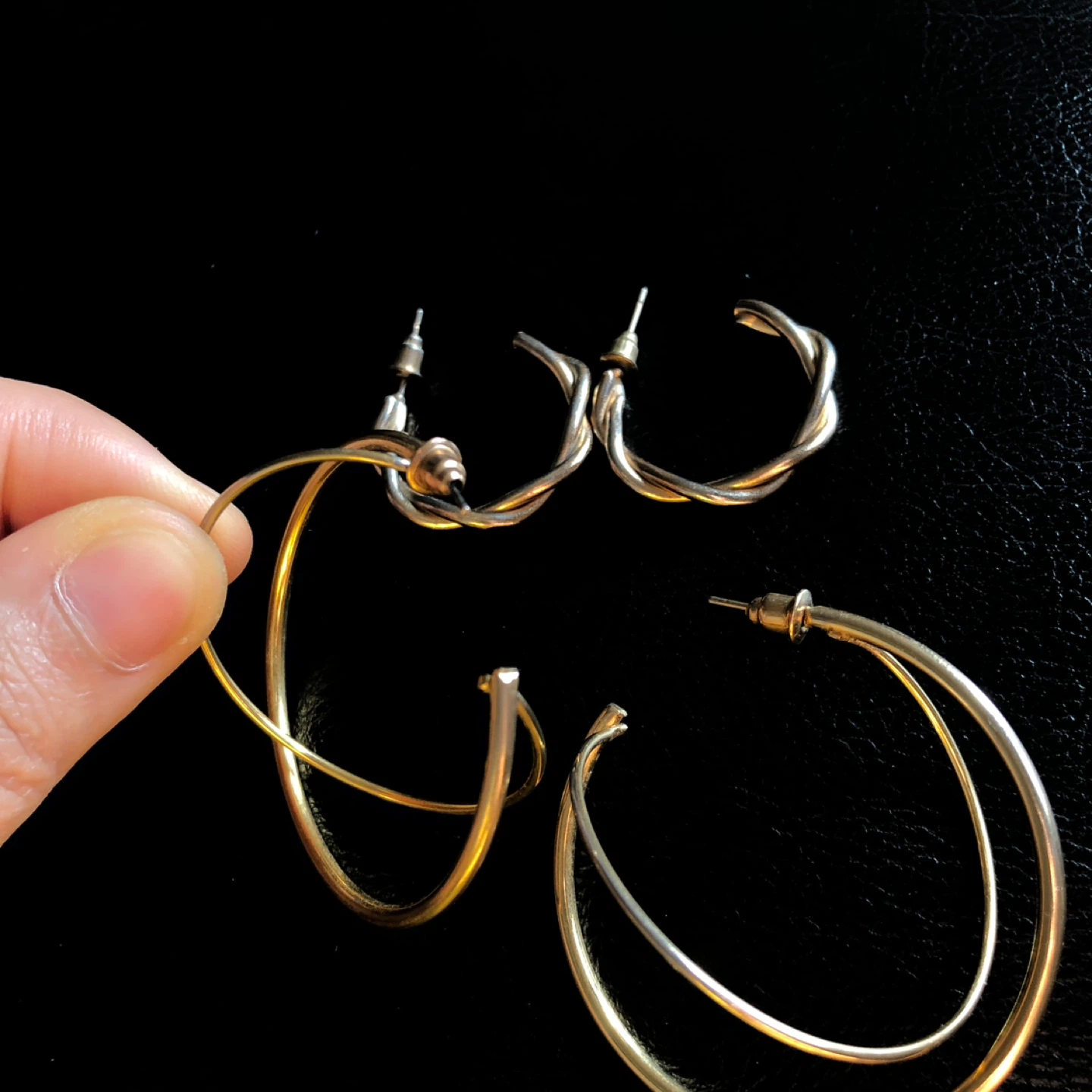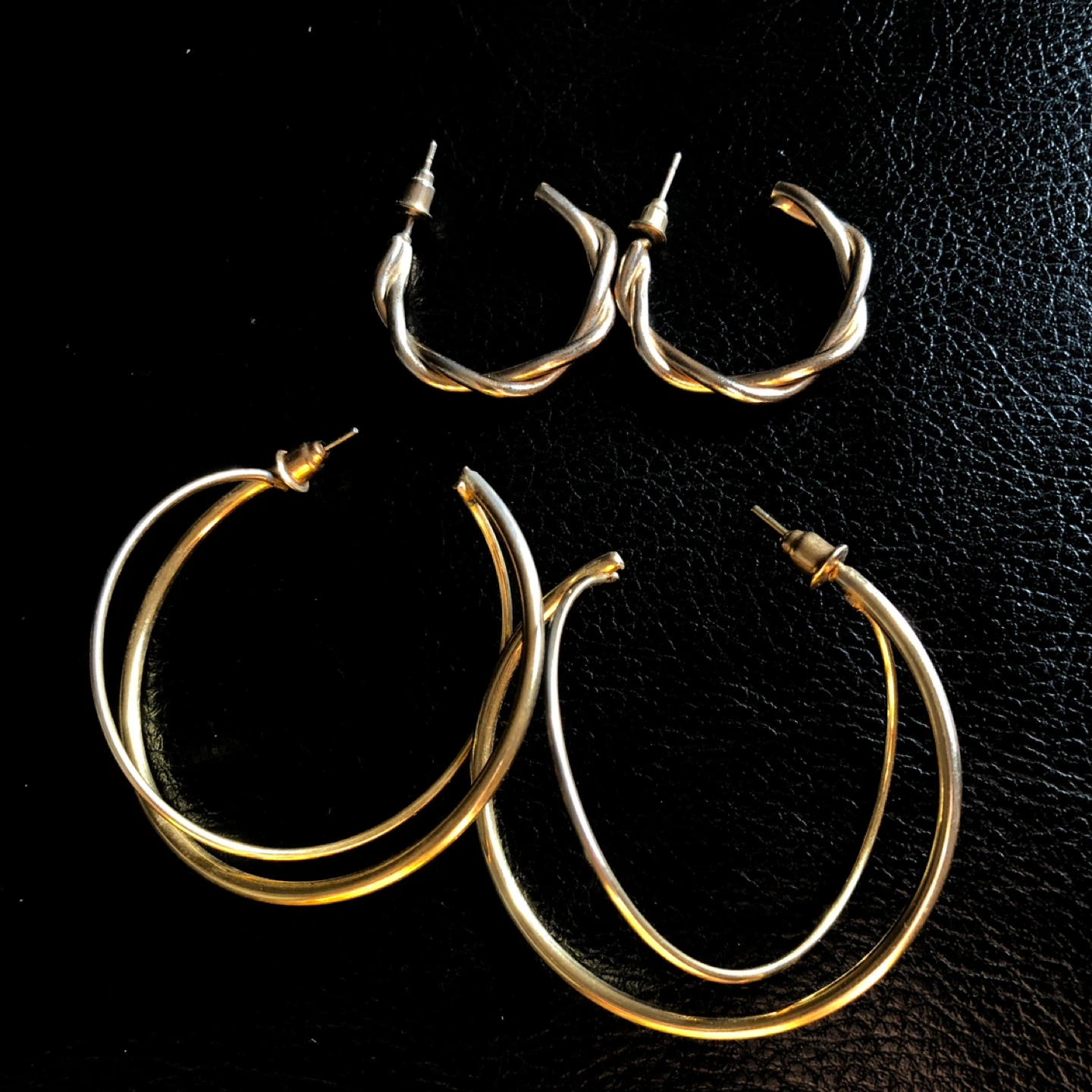 Twoo Pair Gold Tone Hoop Earrings