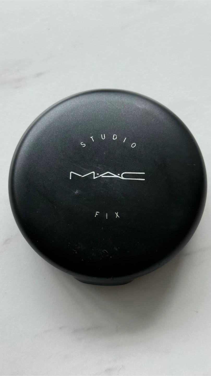 MAC Studio Fix pressed powder. It's a black compact with a mirror inside. This powder provides a matte finish. I don’t use powders and this was gift so giving it away.