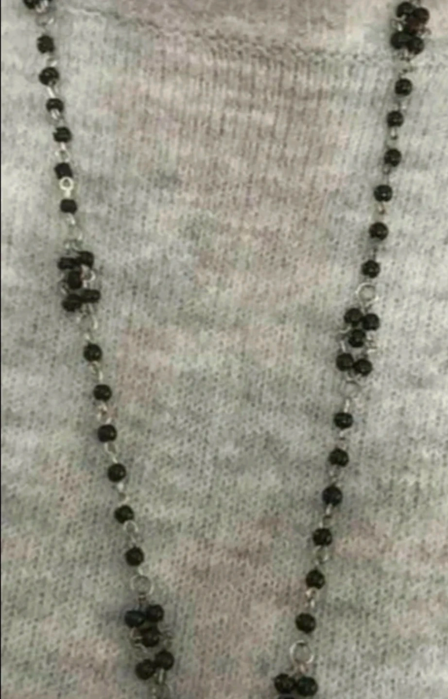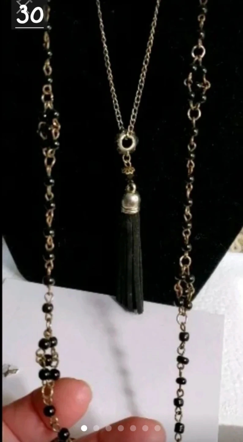 2 necklace and 1earring set! The necklace features a black tassel pendant and beaded chain. The earrings have a matching tassel design. Perfect for adding a touch of elegance to any outfit