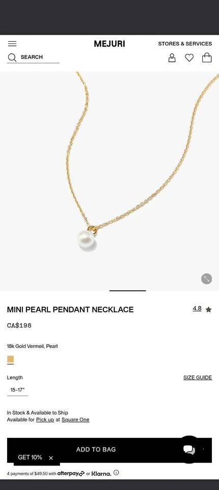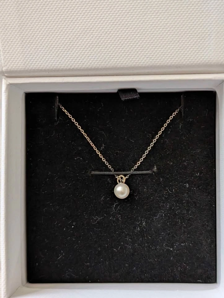 18K Gold Vermeil / Freshwater Pearl. Size: 15"–17" (adjustable). Original Price: $198. Includes: Original box, dust bag, and jewelry bag. Condition: Never worn; chain oxidized from storage. Pick-up: Can meet in Markham/Scarborough area or downtown on weekdays (Queen St W and Peter St). Payment: Cash or E-transfer. Please see my other listings for bundle discount!
