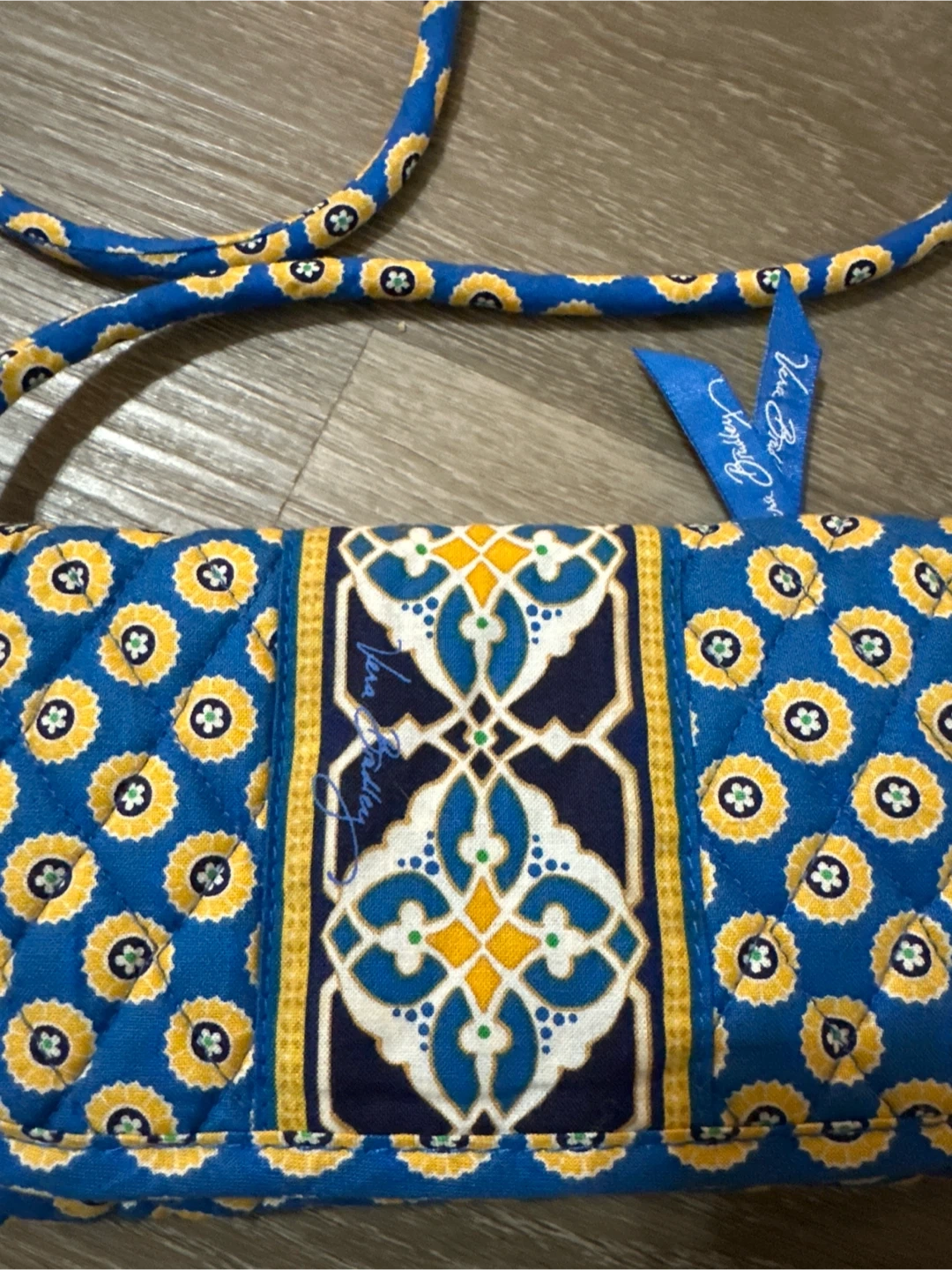 Vera Bradley Blue Yellow Floral Phone Crossbody Bag