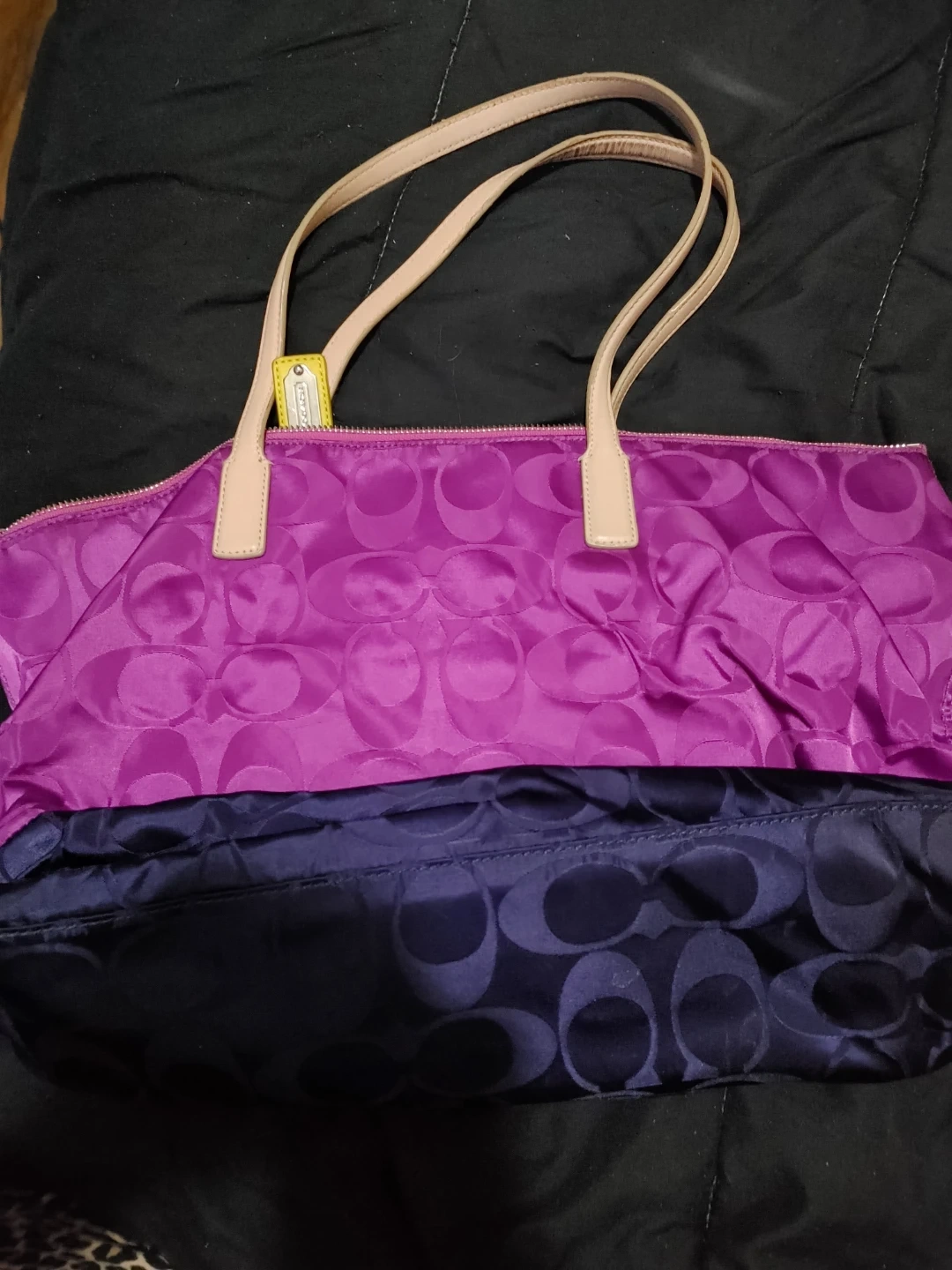 Coach Tote bag in navy blue (bottom) & purple. Made of nylon material. Hardly used, still in excellent conditon.