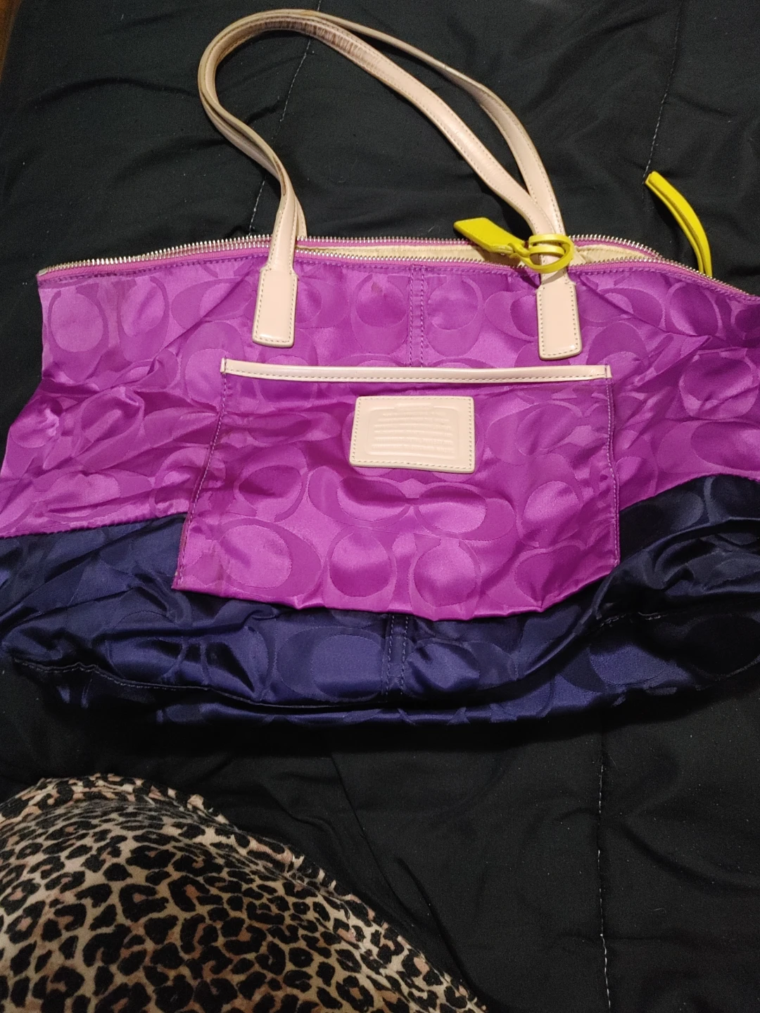 Coach Tote bag in navy blue (bottom) & purple. Made of nylon material. Hardly used, still in excellent conditon.