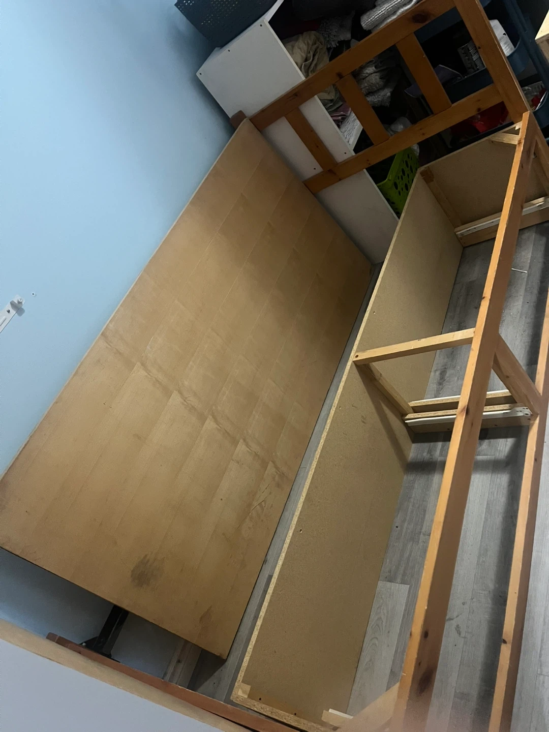 Twin Bed is in good condition; selling only ; Bed is a hard wood and sturdy; no mattress; pick up only; PM me if interested; Thanks