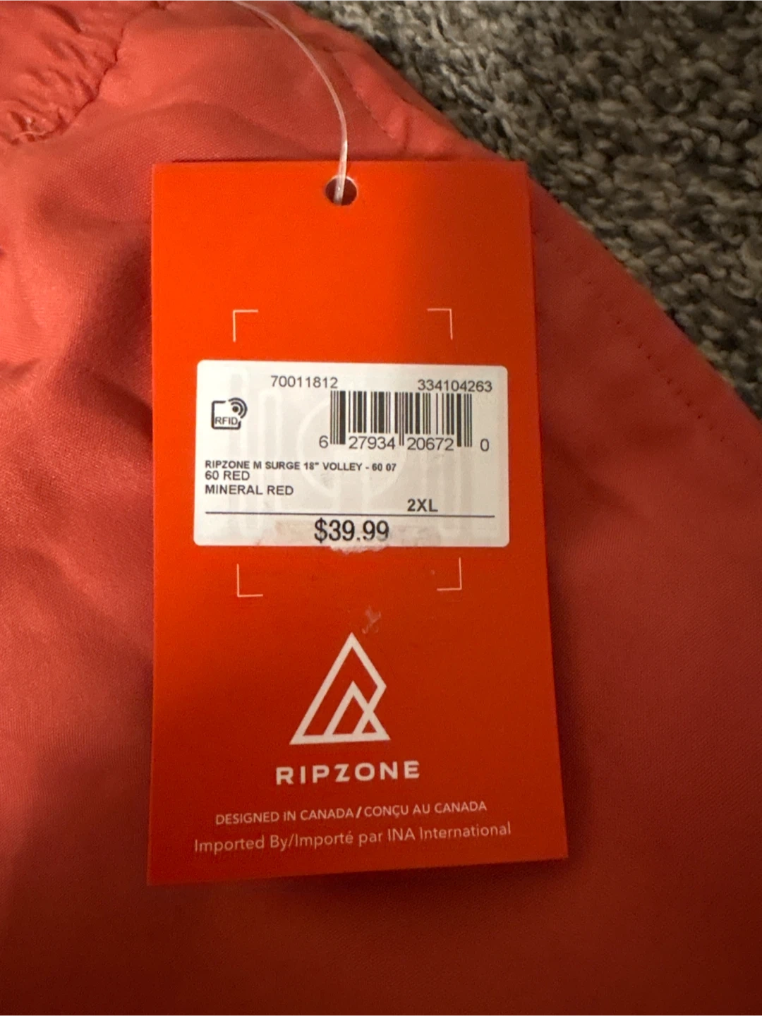 Ripzone men's Surge Volley shorts in Mineral Red. These shorts are size 2XL. They're designed for comfort and durability.