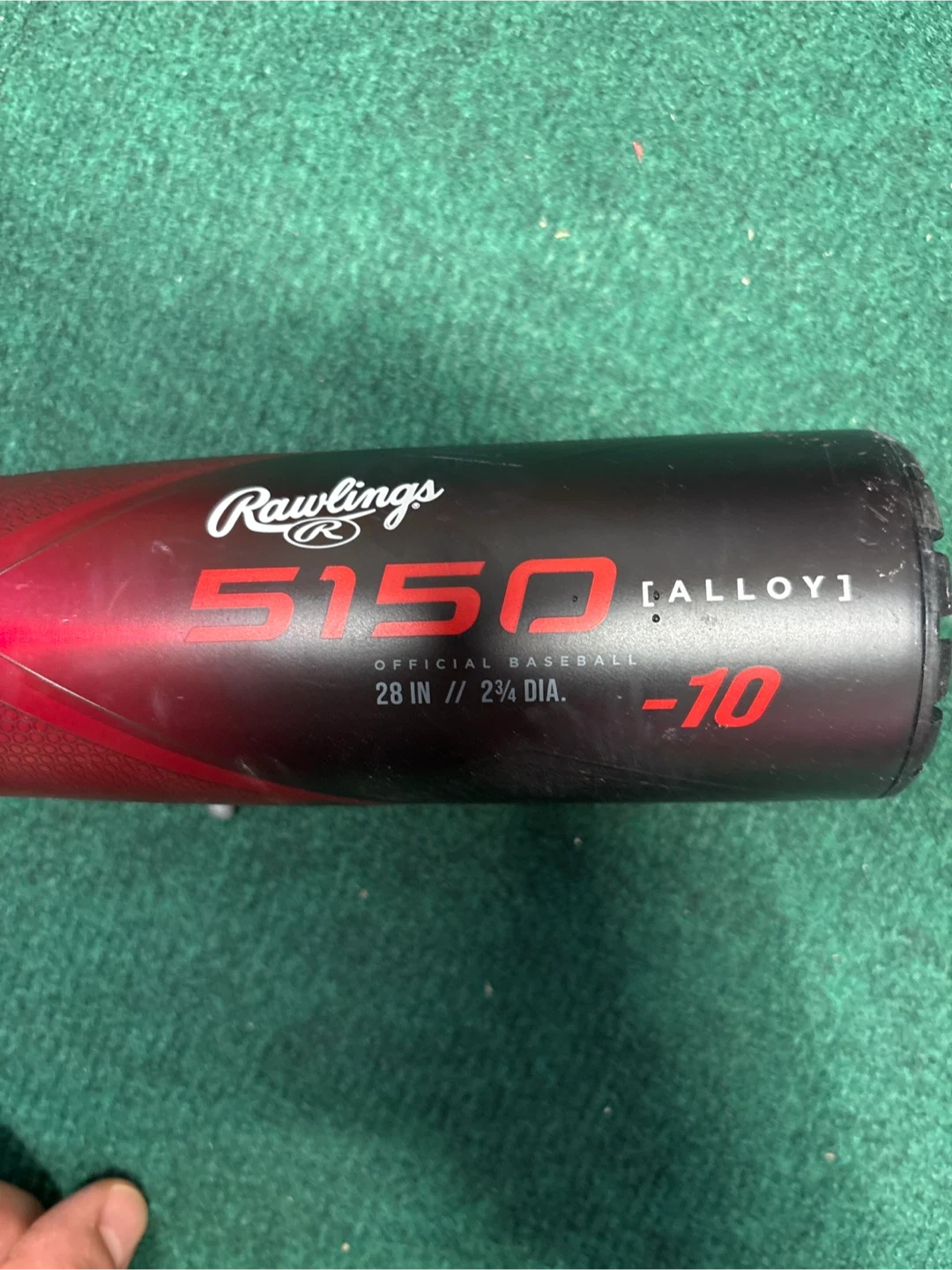 Buy & SellRawlings 5150 Alloy Baseball Bat 28 inch -10Rawlings 5150 Alloy Baseball Bat 28 inch -10$100Rawlings 5150 alloy baseball bat. It's 28 inches long with a 2 3/4 inch diameter. Model RUT3510. For official baseball play. Great condition.ConditionLike newWHERE TO MEETCheck LocationView MapSELLERverifiedChrisGeorgetown711 review0 chats·0 favorites·2 viewsSEND CHAT TO SELLERHi Chris! I’m interested in your listing.Hi Chris! I’m interested in your listing.Get the Karrot app to chatSign In to chat