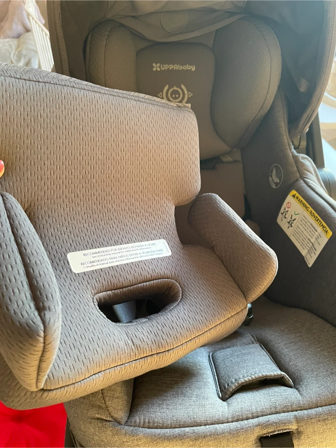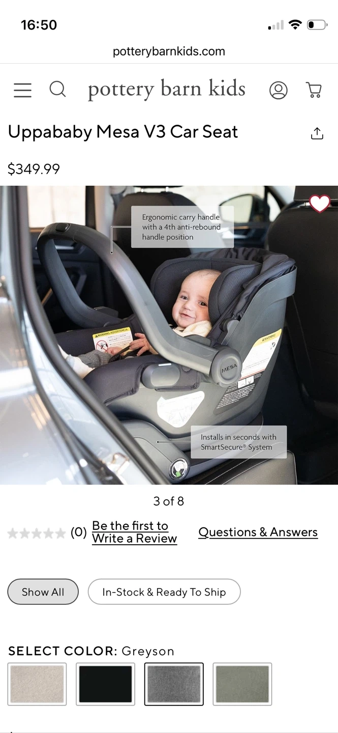 This is the Uppababy Mesa V3 infant car seat in the Greyson color.