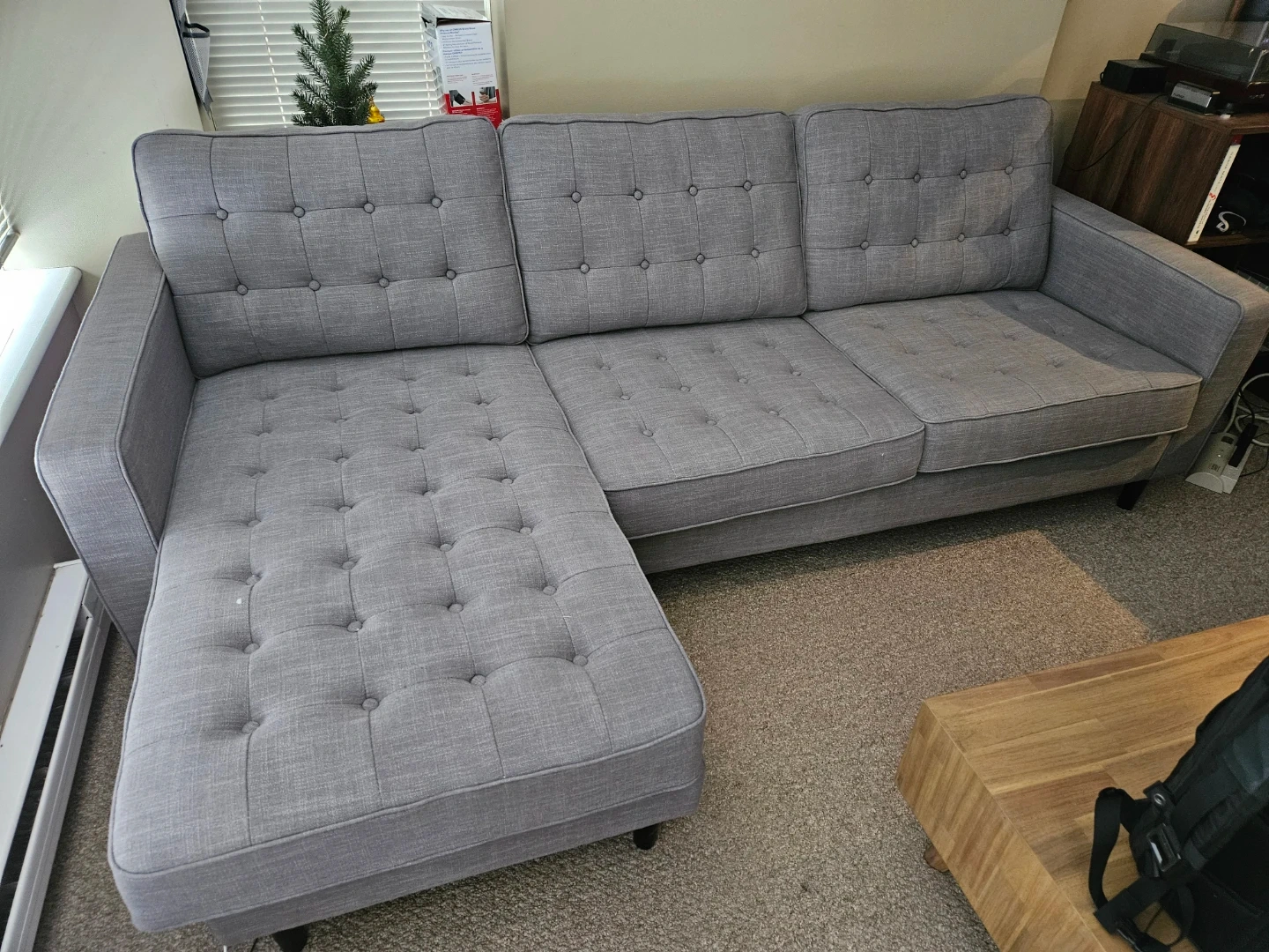 Structube: Grey Tufted Sectional Sofa