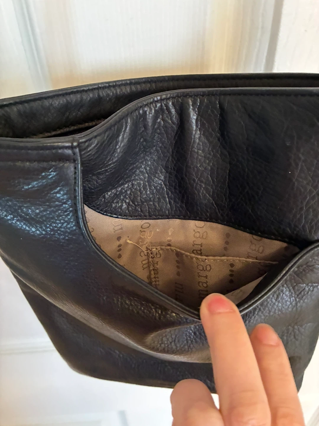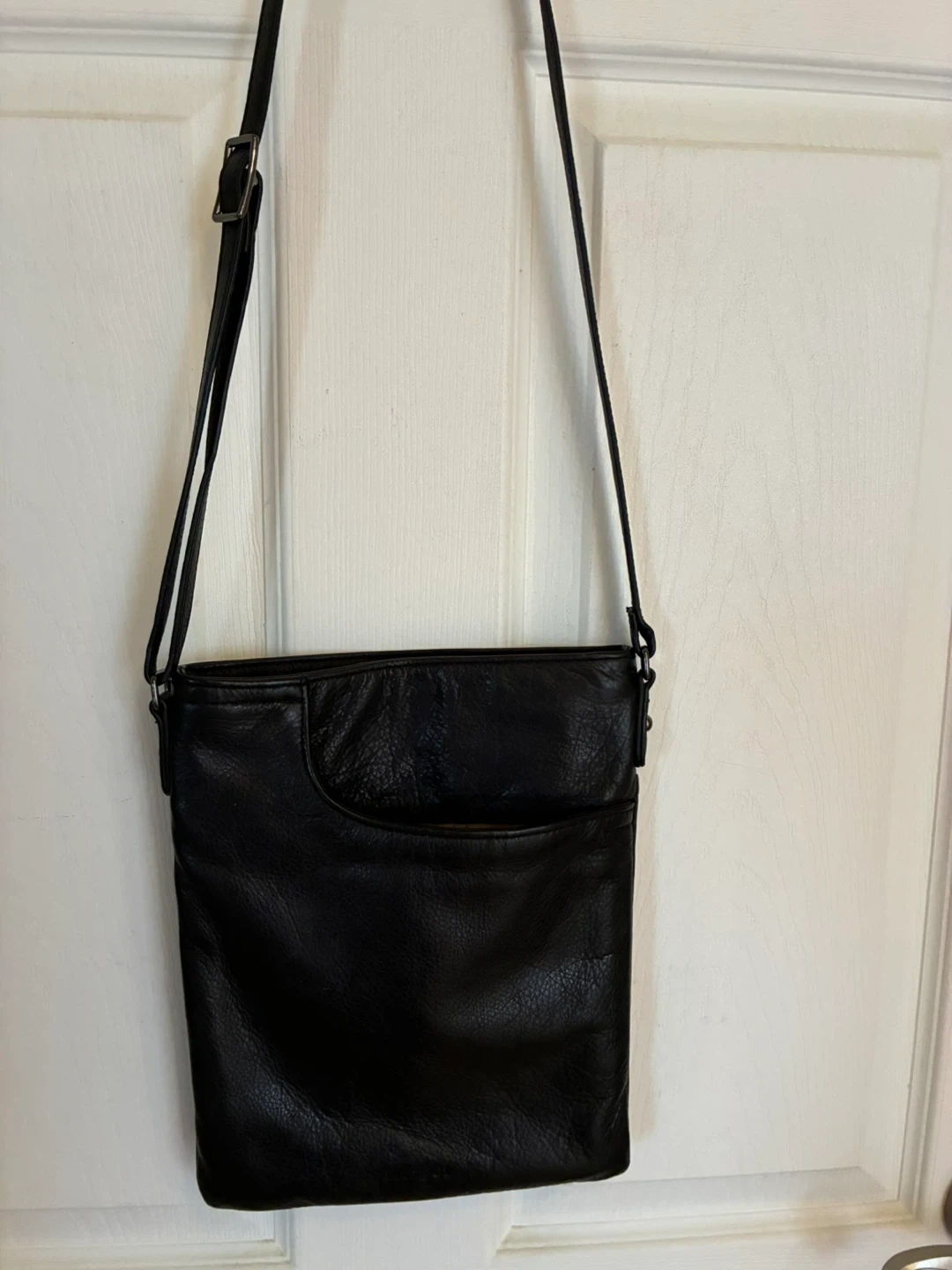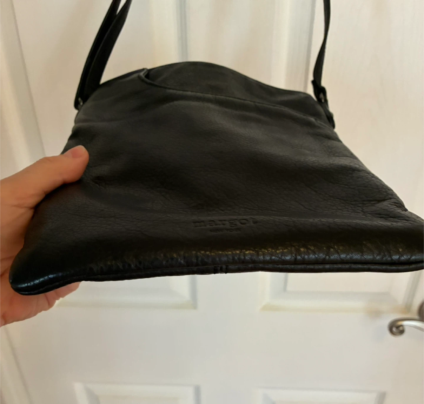 Margot New York black leather crossbody bag.