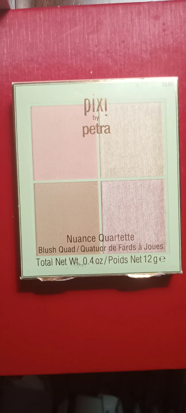 This Pixi by Petra Nuance Quartette blush quad features four shades for versatile application. It includes a mix of blush and highlight tones. Total net weight is 0.4 oz or 12 g.