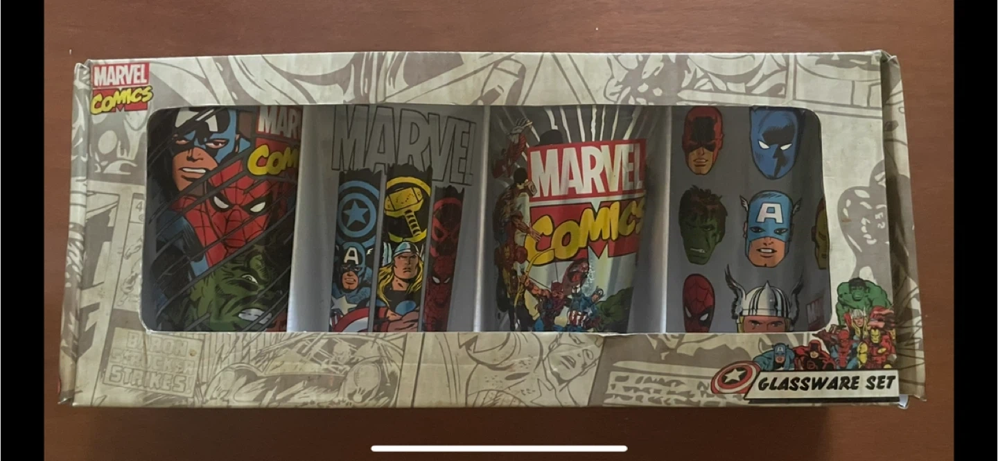 Buy & SellMarvel Comics Glassware SetMarvel Comics Glassware Set$20This is a set of Marvel Comics glassware. It includes multiple glasses featuring various superheroes. Perfect for any Marvel fan!WHERE TO MEETGuildfordView MapSELLERLBFleetwood321 review0 chats·0 favorites·7 viewsSEND CHAT TO SELLERHi LB! I’m interested in your listing.Hi LB! I’m interested in your listing.Get the Karrot app to chatSign In to chat