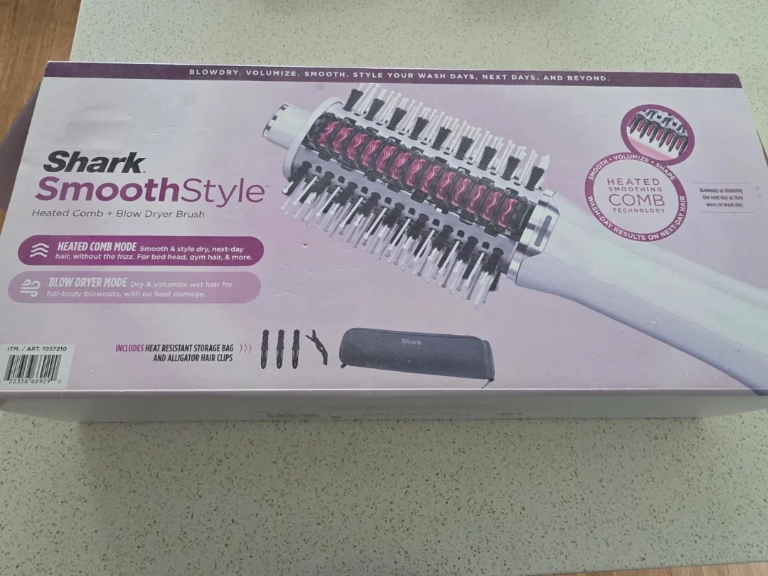 Shark SmoothStyle Heated Comb + Blow Dryer Brush for smooth and voluminous hair. It features heated comb mode for dry, next-day hair without frizz. Also includes a blow dryer mode for wet hair.
