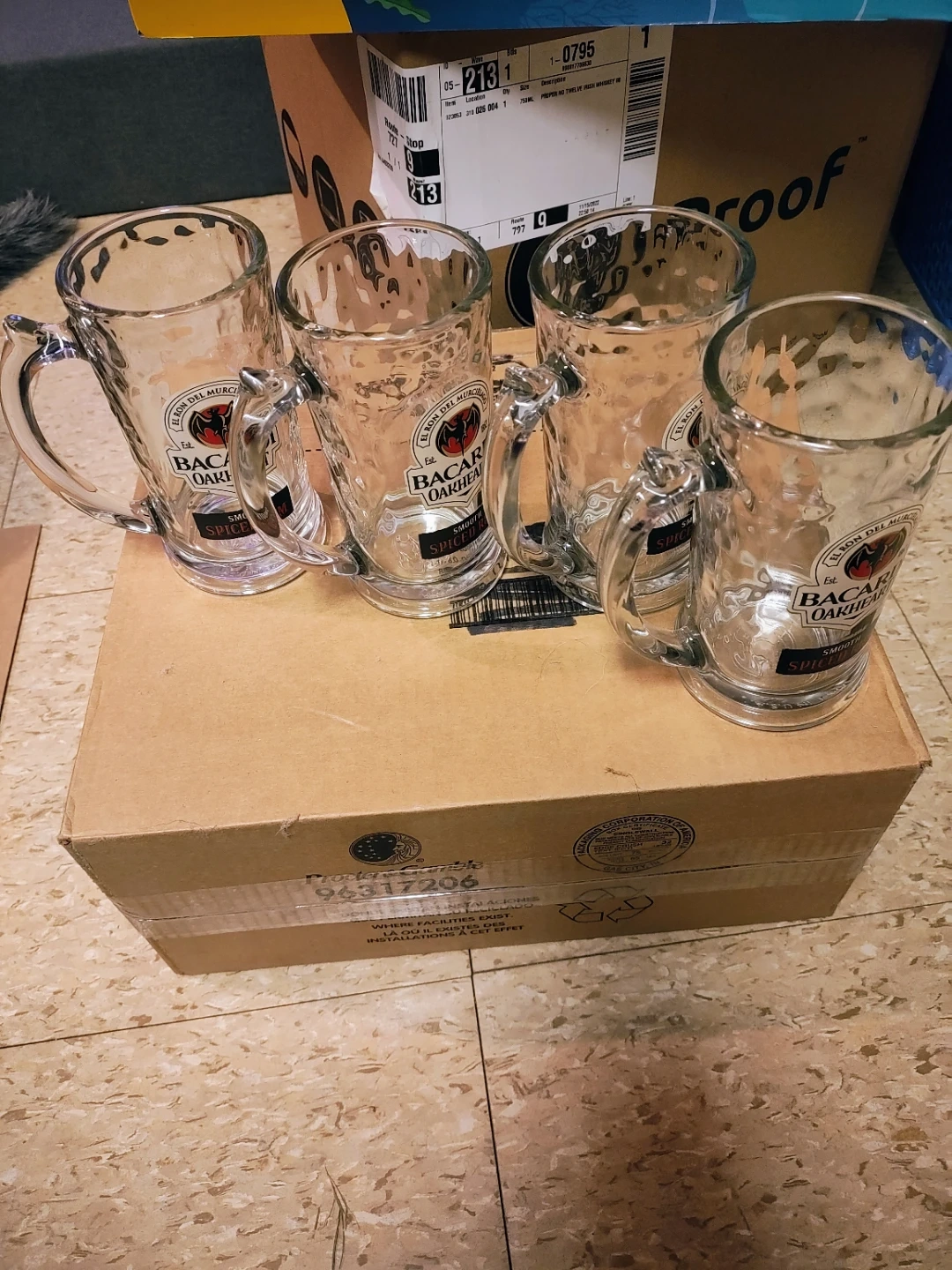 Selling a set of Bacardi Oakheart Spiced Rum beer mugs! These are perfect for enjoying your favorite drinks. They have a classic design and are in great condition. They are made of clear glass with the Bacardi logo on the front. 1 of these glasses is selling for $10 on eBay. Selling all 4 for $10. Cash only pick up only
