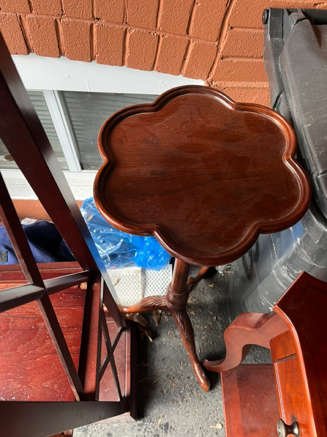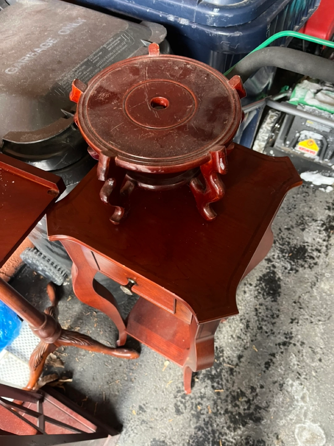A lovely wooden side table. It features a single drawer for storage. Its classic design fits well in many decors. This table's compact size makes it versatile for various spaces.
