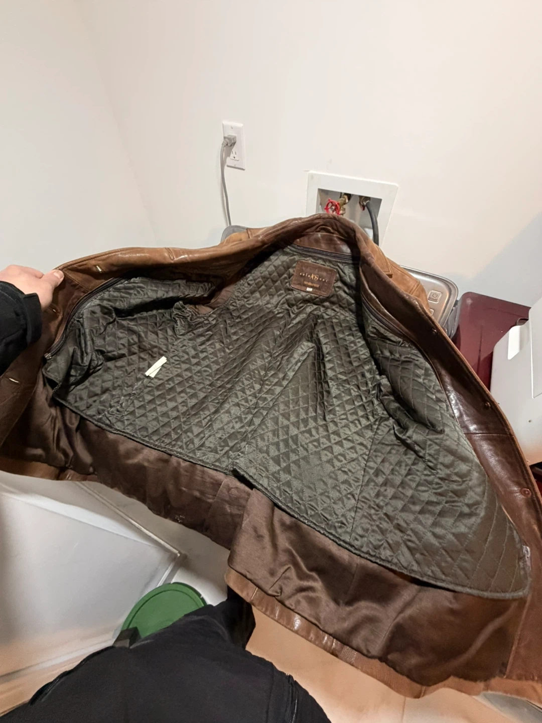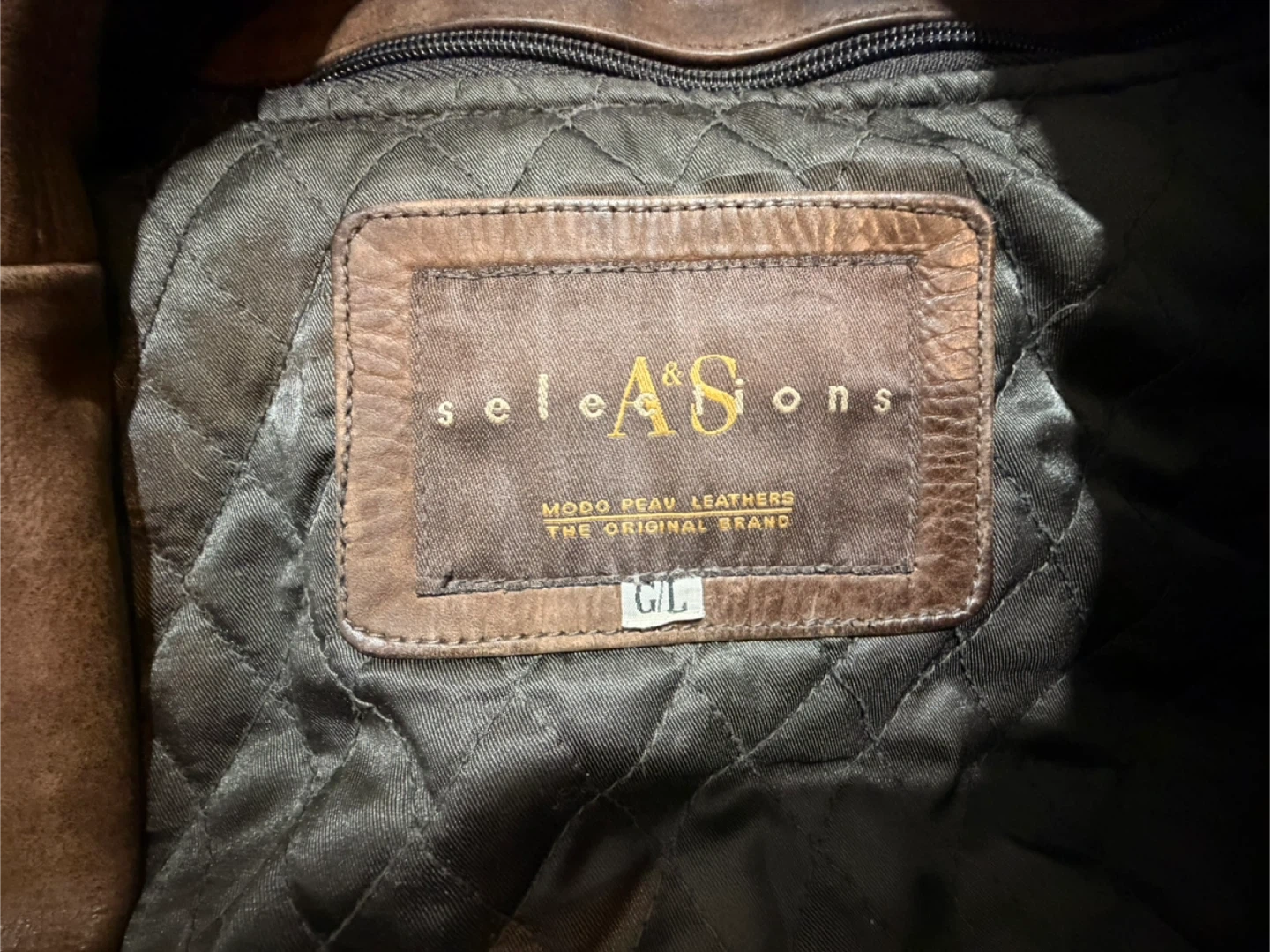 Selections original brand men's brown leather jacket. Made from fine leathers. Quilted lining for added warmth. It's a classic style that's perfect for cooler weather!