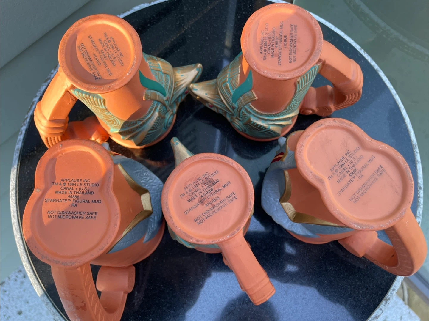 Selling a set of five Stargate 'Ra', 'Horus', and 'Anubis' mugs. These mugs are from 1994 by Le Studio Canal + U.S. Made in Thailand. They are in great condition for their age! Perfect for any Stargate fan or collector