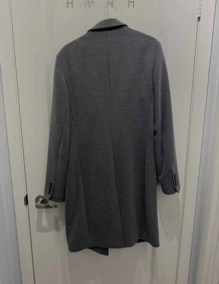 Stylish Zara Man grey overcoat. Has two front buttons and two pockets. Black inner lining. Great for layering. Pick up near Yonge /St Clair.