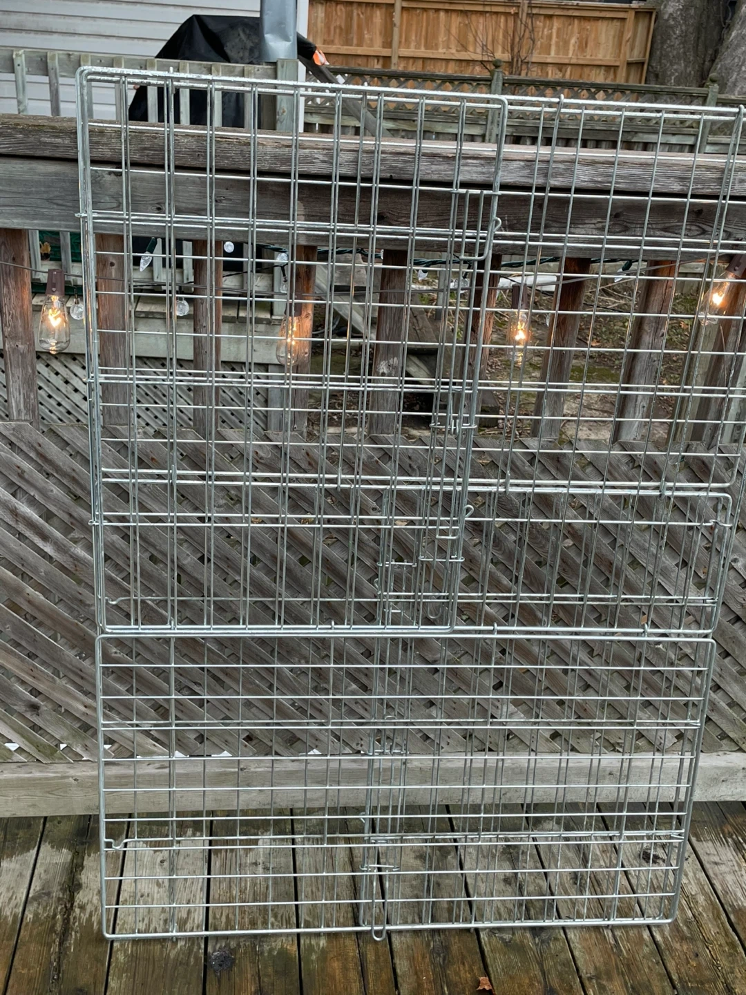 This is a wire pet crate or enclosure. It's made of metal wire construction. The enclosure folds flat for easy storage.