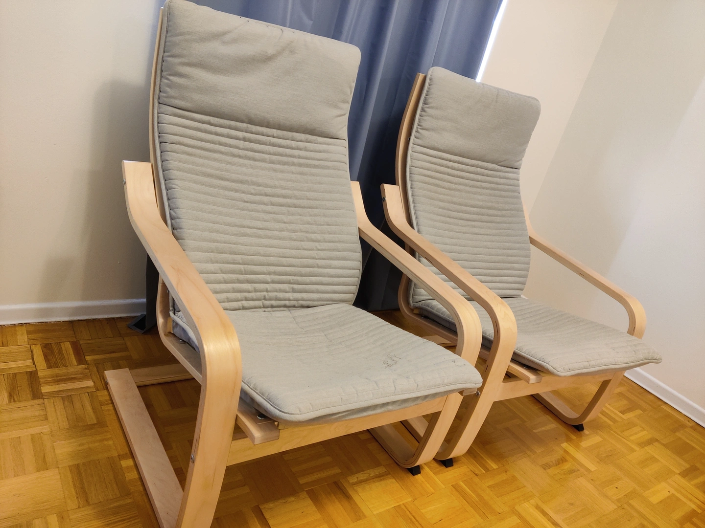 Selling IKEA Poang chairs - one for $30.00 or two for only $50.00. Price is firm. Both are in good condition and can easily be re-assembled, comes with original instruction manual. Pick-up only.