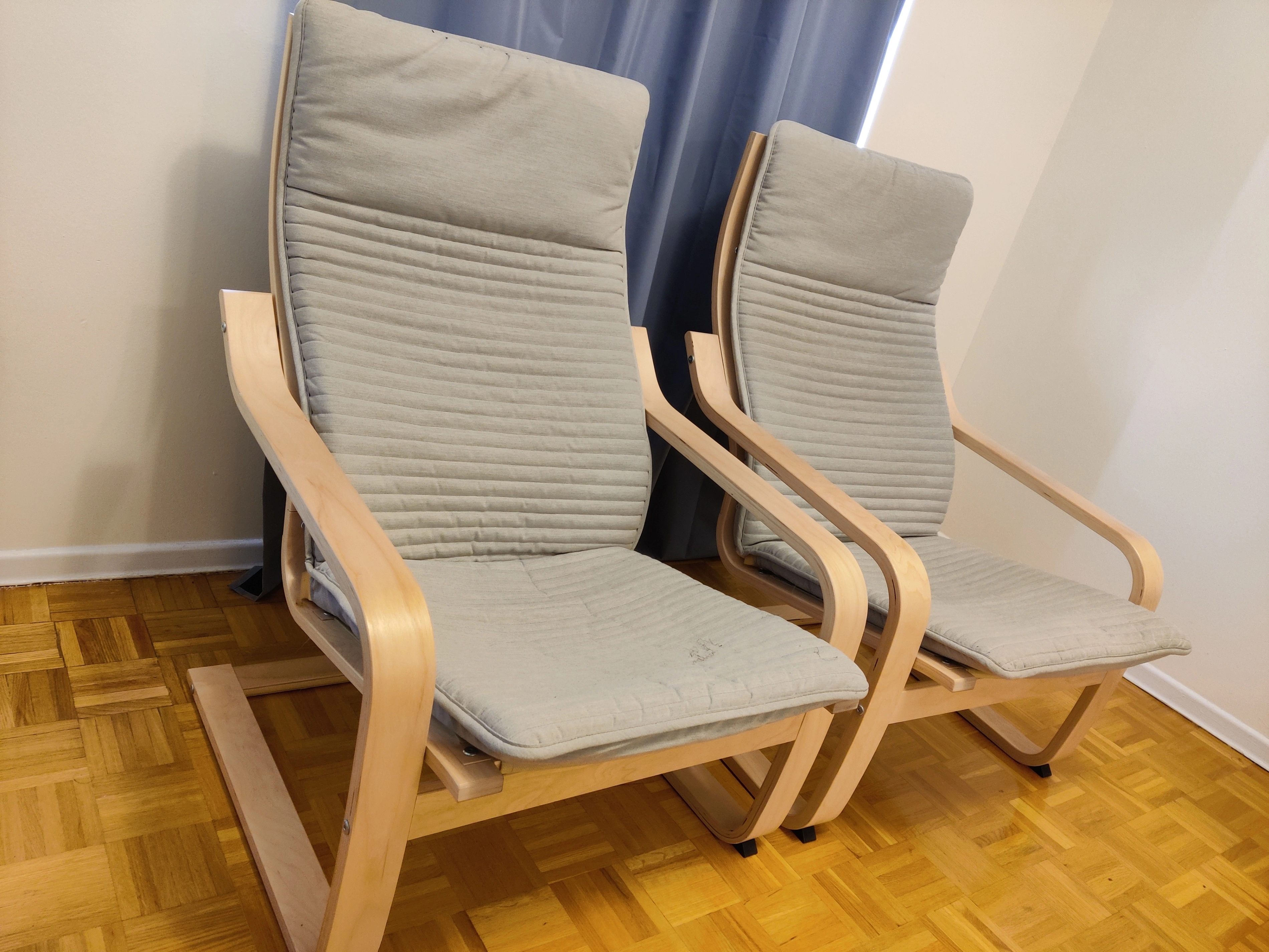 Selling IKEA Poang chairs - one for $30.00 or two for only $50.00. Price is firm. Both are in good condition and can easily be re-assembled, comes with original instruction manual. Pick-up only.