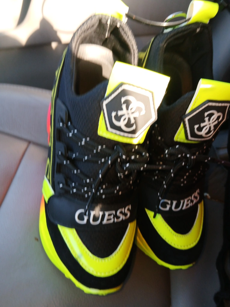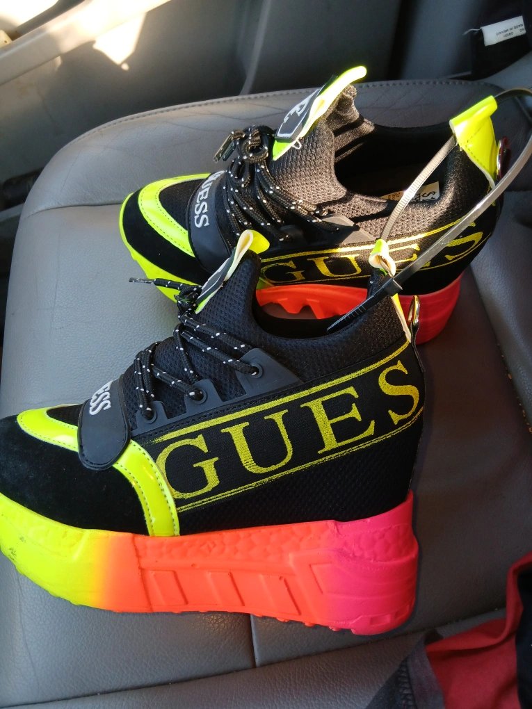 Check out these Guess sneakers with neon yellow and pink accents! They're in great condition and ready for a new home