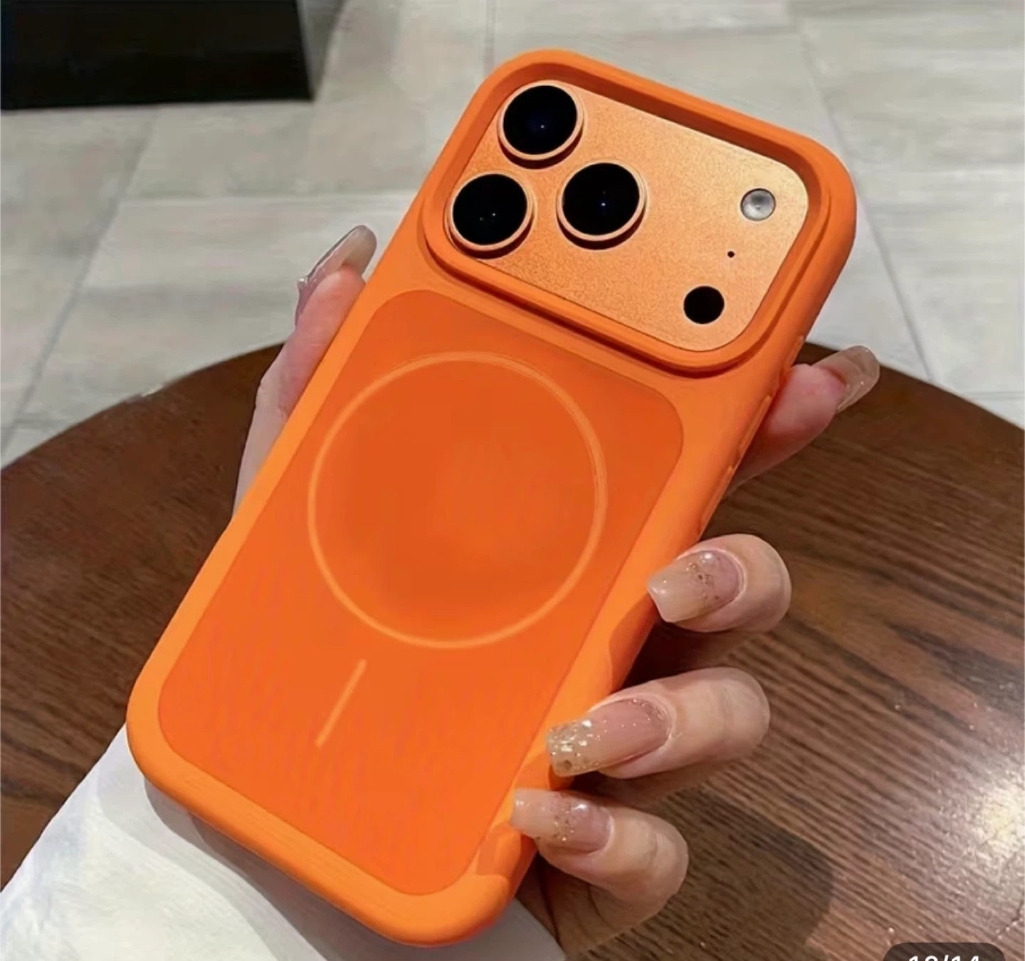 silver iPhone 17 pro max caseMade of durable material with a built-in lanyard for easy carrying. Features MagSafe compatibility.