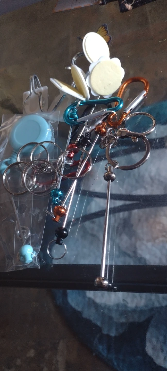 Selling a variety of craft supplies! There's a big mix of colourful beads, foam shapes, glitter, and other fun bits and bobs! Charms and Attachments. King chain rings and keychain fobs. . Ceramic charm to make a assorted crafts.Perfect for kids' crafts or your own projects. I have more things to add. Craft Paint, Rope necklaces.