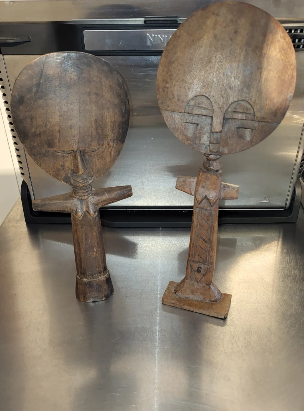 2 hand-carved wood idols, male and female. No damage to either, got them as part of a lot from an estate sale and don't have room for them.