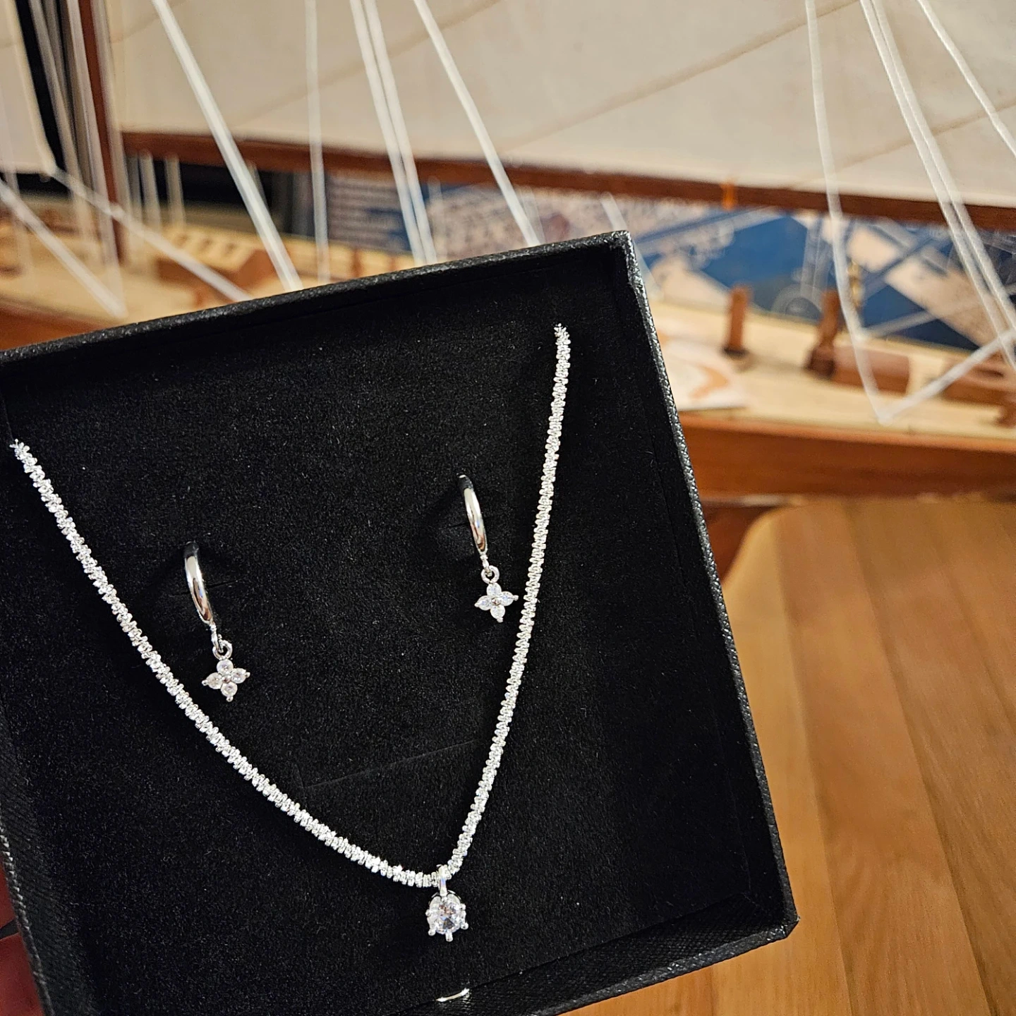 Design: Features a sparkling laser-cut chain and elegant floral-inspired earrings.