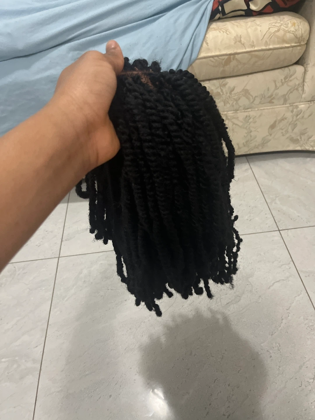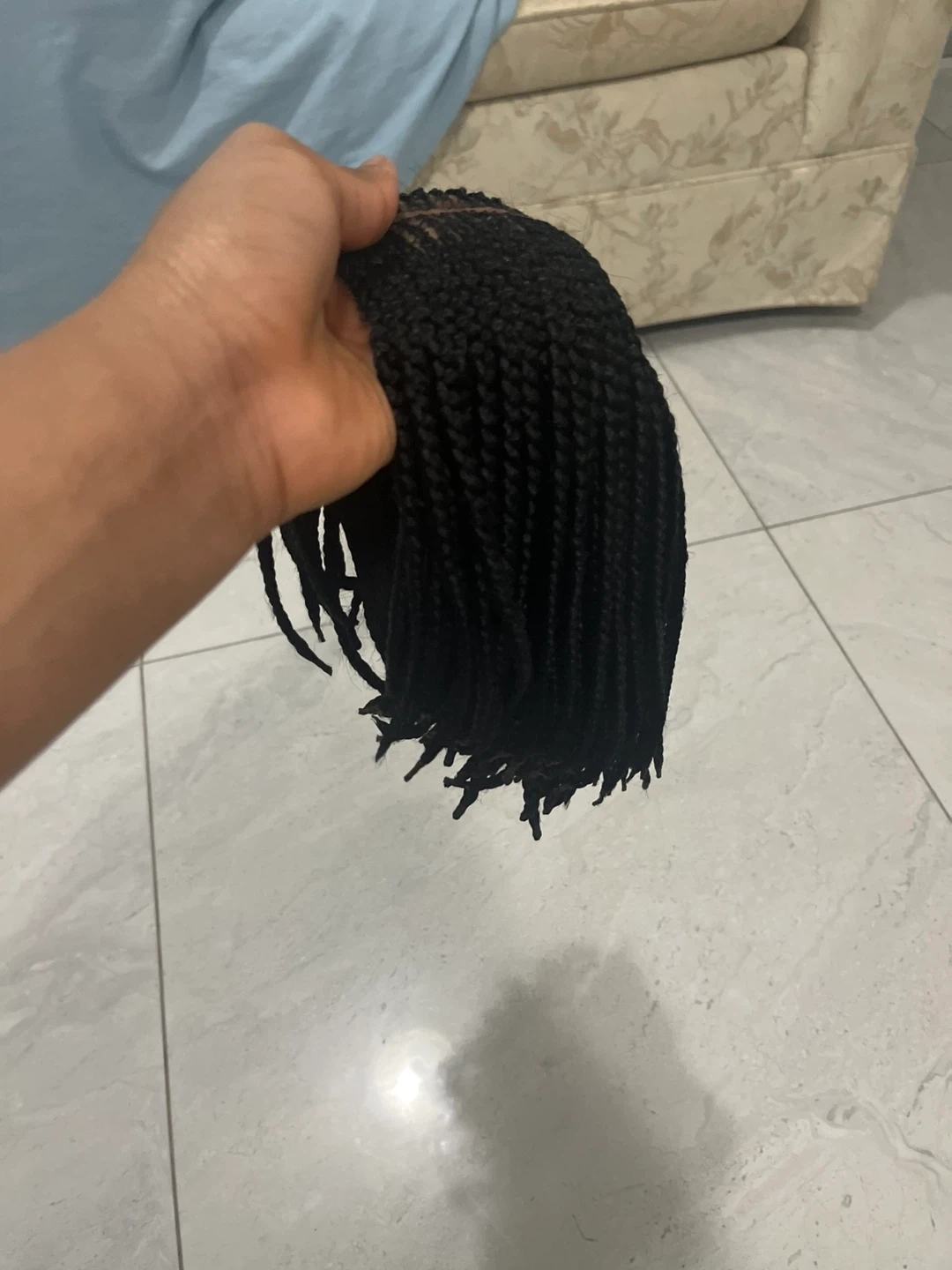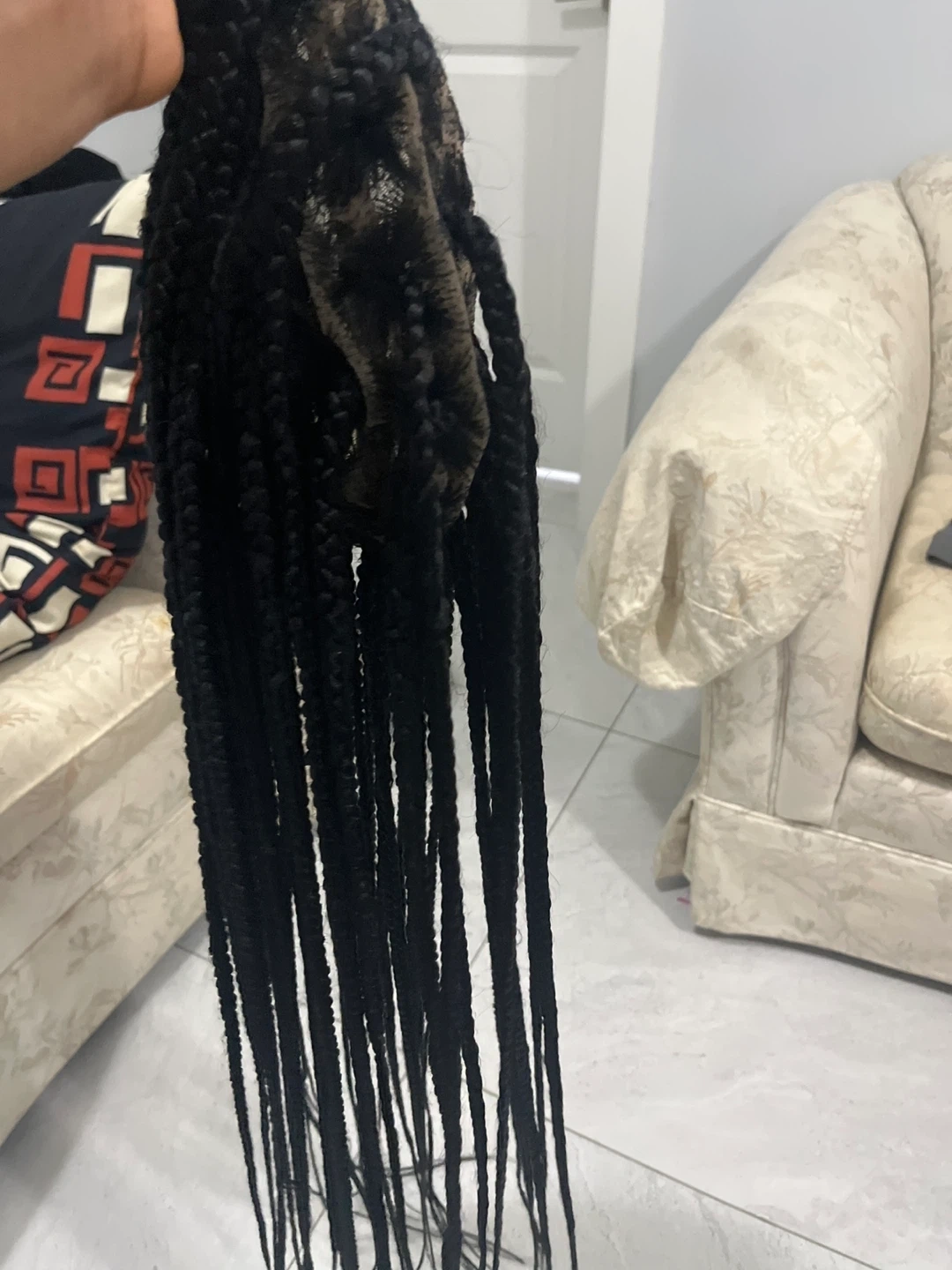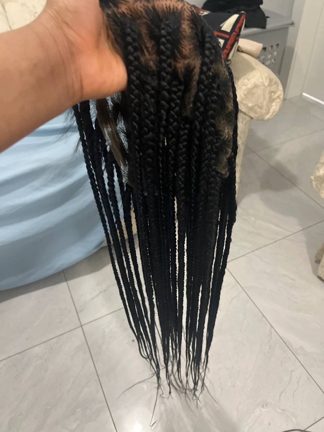 3 different Black braided wig. Features braided strands attached to a lace cap. Provides a new hairstyle.