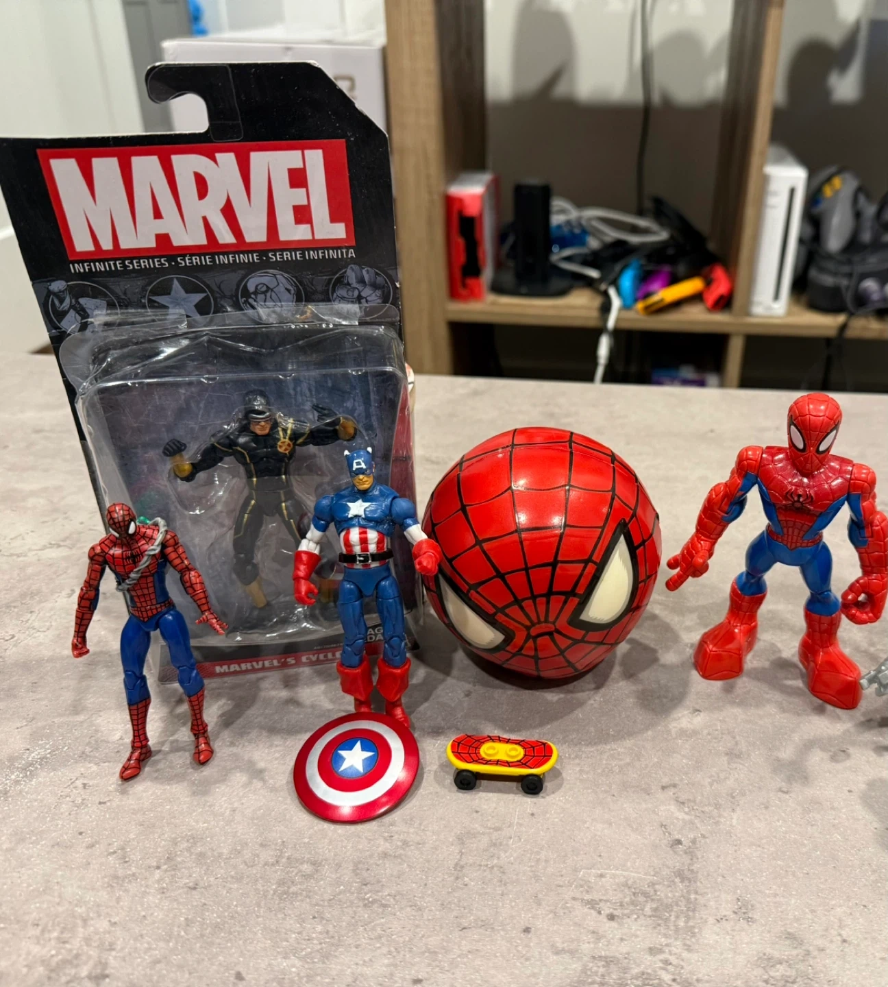 Selling a set of Marvel action figures! Includes Spider-Man, Captain America, and Cyclops. Perfect for any Marvel fan or collector.