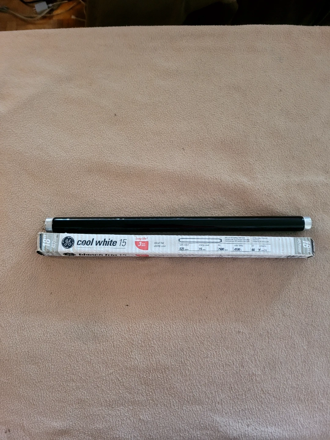 This is a GE cool white fluorescent light bulb. It's an 18-inch, 15-watt bulb with a 3-year long life. Light output is 825 lumens, and it's ideal for utility use.