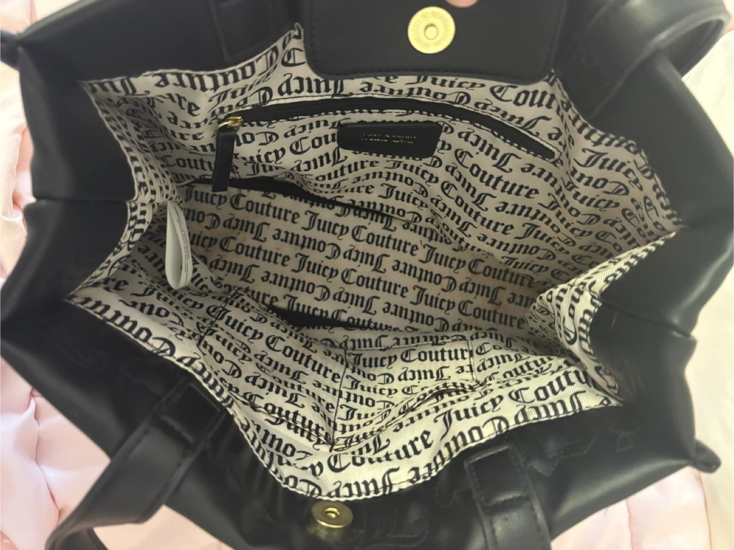 Selling a black Juicy Couture tote bag! It's in great condition and features the Juicy Couture logo embossed on the exterior. The inside lining has the Juicy Couture print as well. Perfect for everyday use!