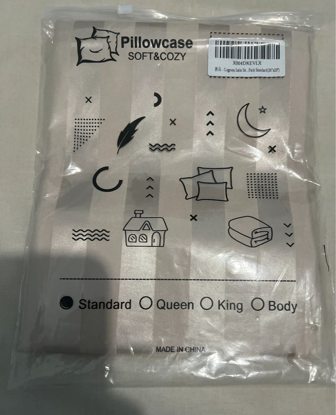 This is a SOFT&COZY satin striped pillowcase. It's a standard size, measuring 20"x26". The material is satin. This pillowcase offers a smooth and luxurious feel!