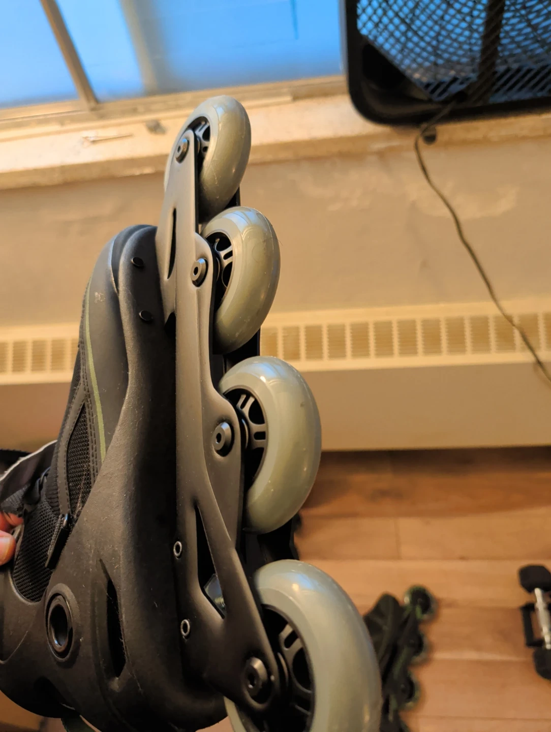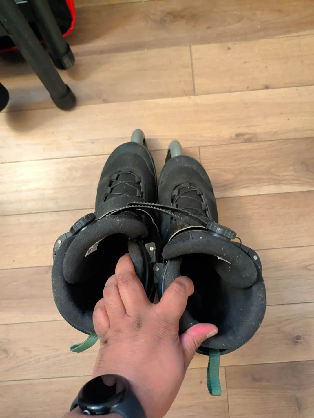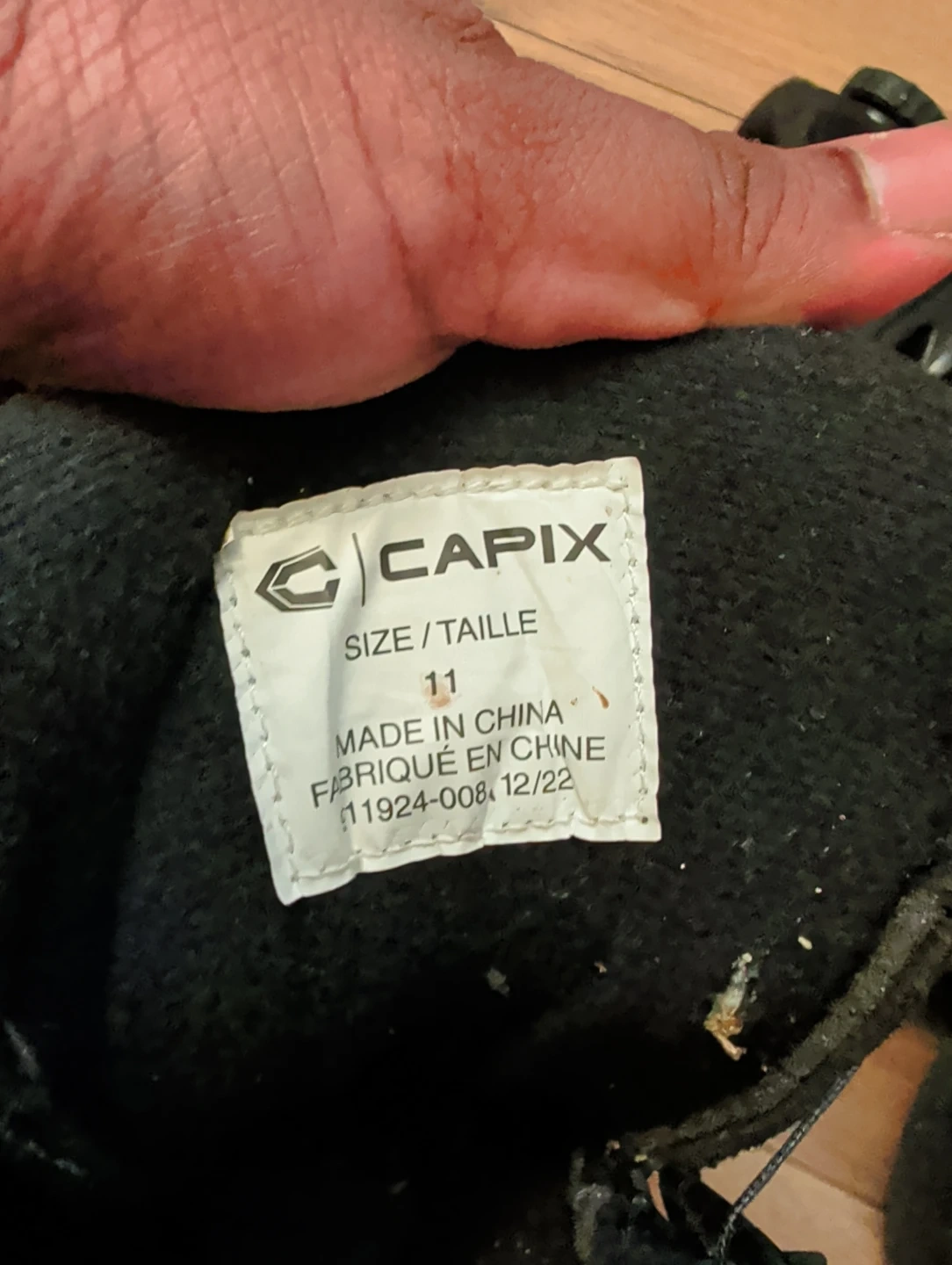Black Capix inline skates. Size 11. These skates have a sturdy frame with four wheels. Worn indoors within the apartment and have decided skating isn't for me. Been in storage for over an year looking to get these off of me.