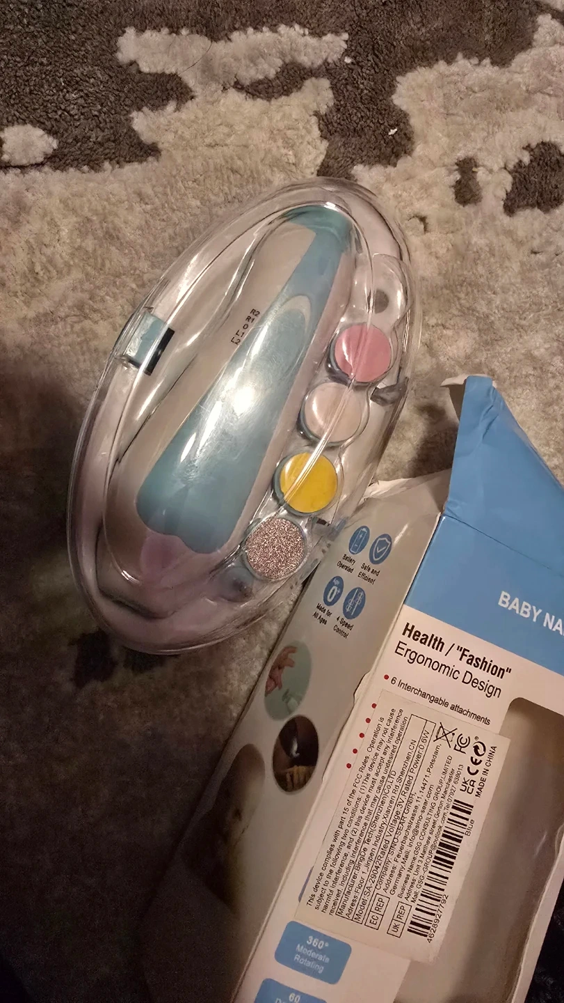 This electric baby nail file is designed for newborns and toddlers. It features 6 interchangeable nail grinding heads for different ages and needs. The trimmer is quiet and ergonomic, making nail care easy and safe.