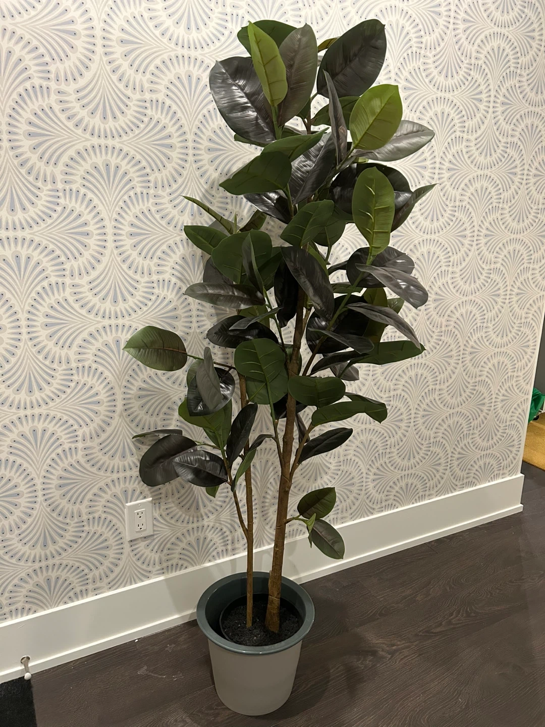 Selling a faux fiddle leaf fig tree! It's in great condition and would look lovely in any home. It stands tall and adds a touch of greenery without the hassle of maintenance (if you want to, it can come with the ceramic pot you see in the picture for an extra $15)