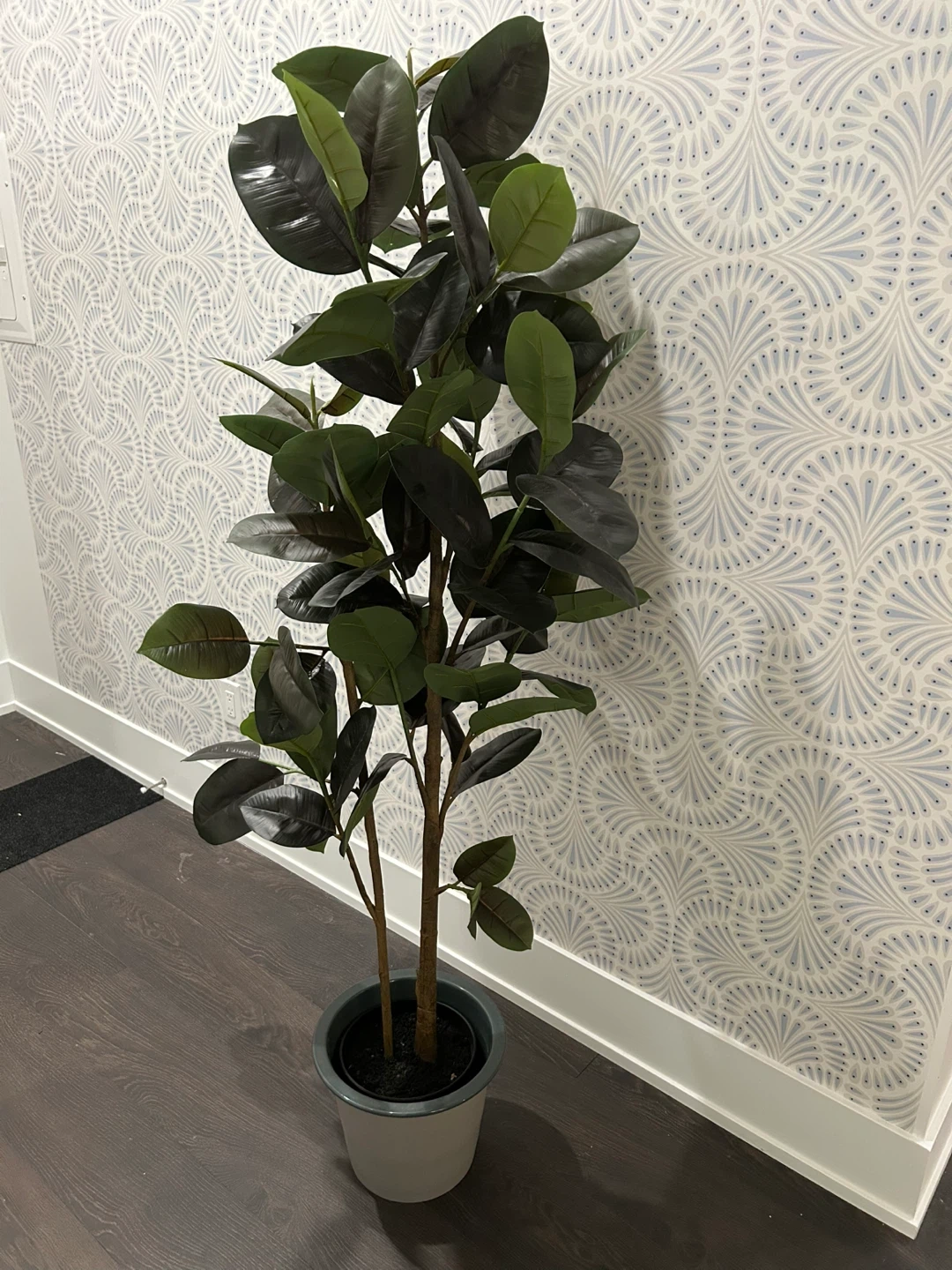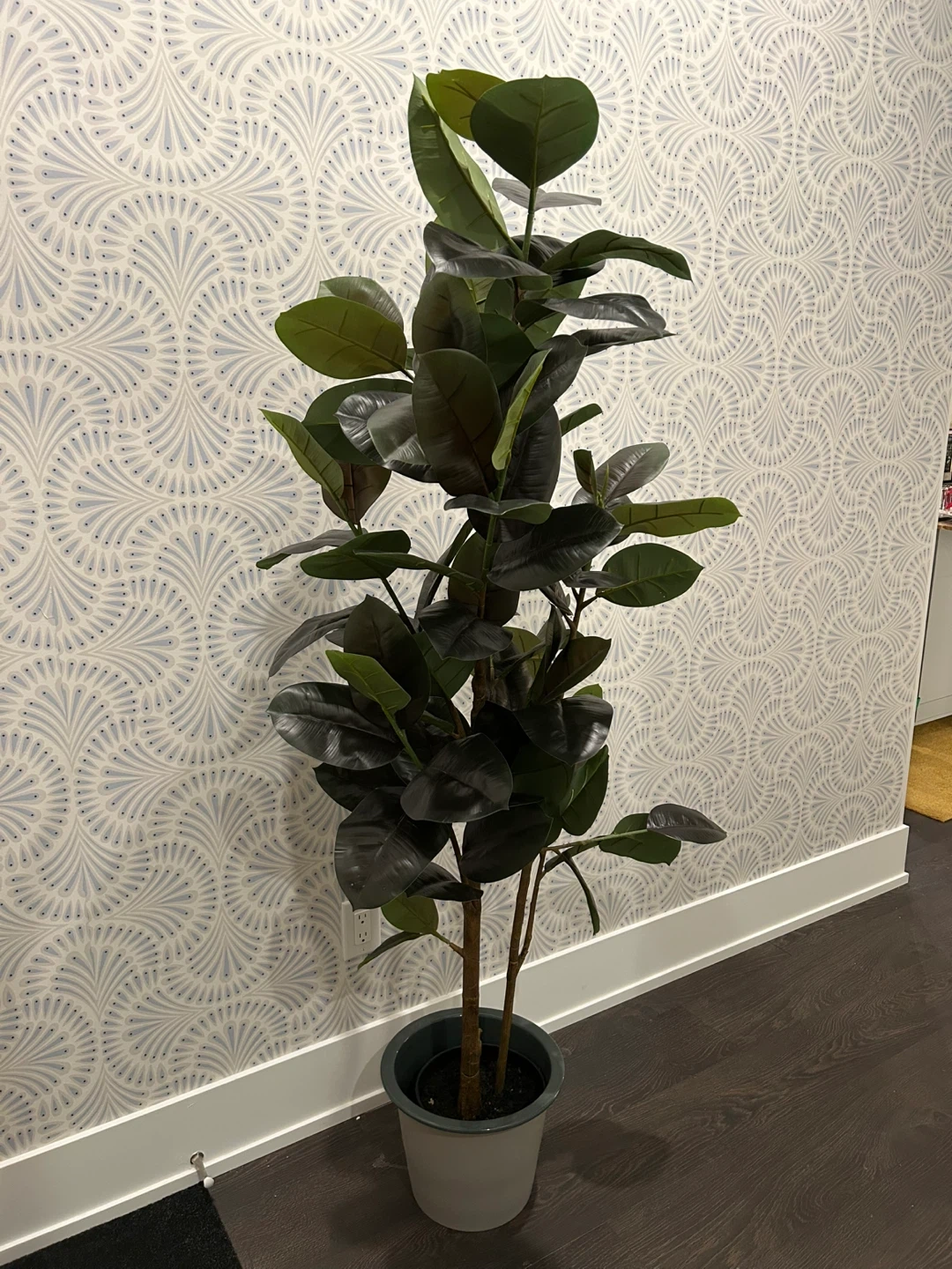 Selling a faux fiddle leaf fig tree! It's in great condition and would look lovely in any home. It stands tall and adds a touch of greenery without the hassle of maintenance (if you want to, it can come with the ceramic pot you see in the picture for an extra $15)