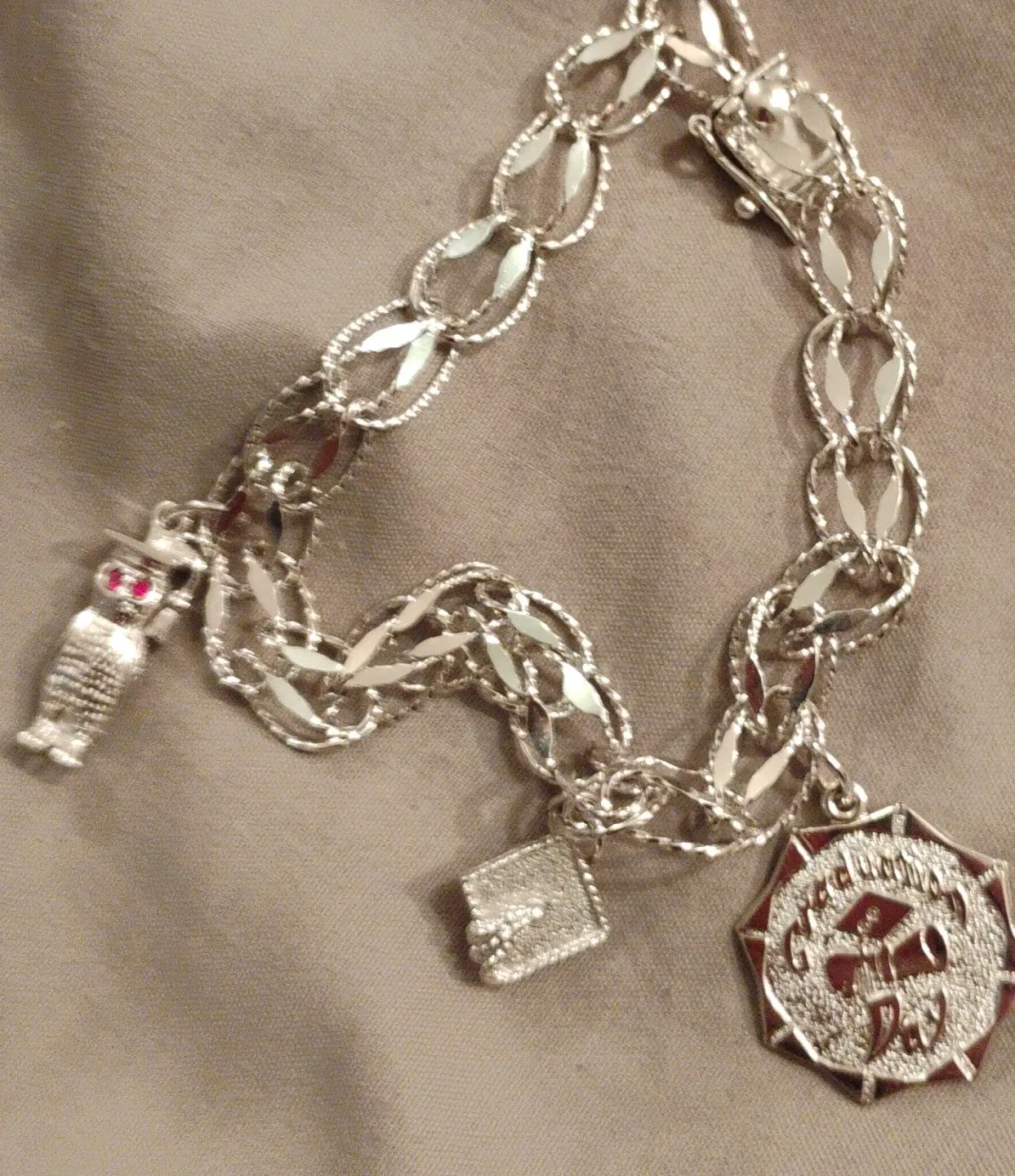 Silver Tone Charm Bracelet with Graduation and Owl Charms