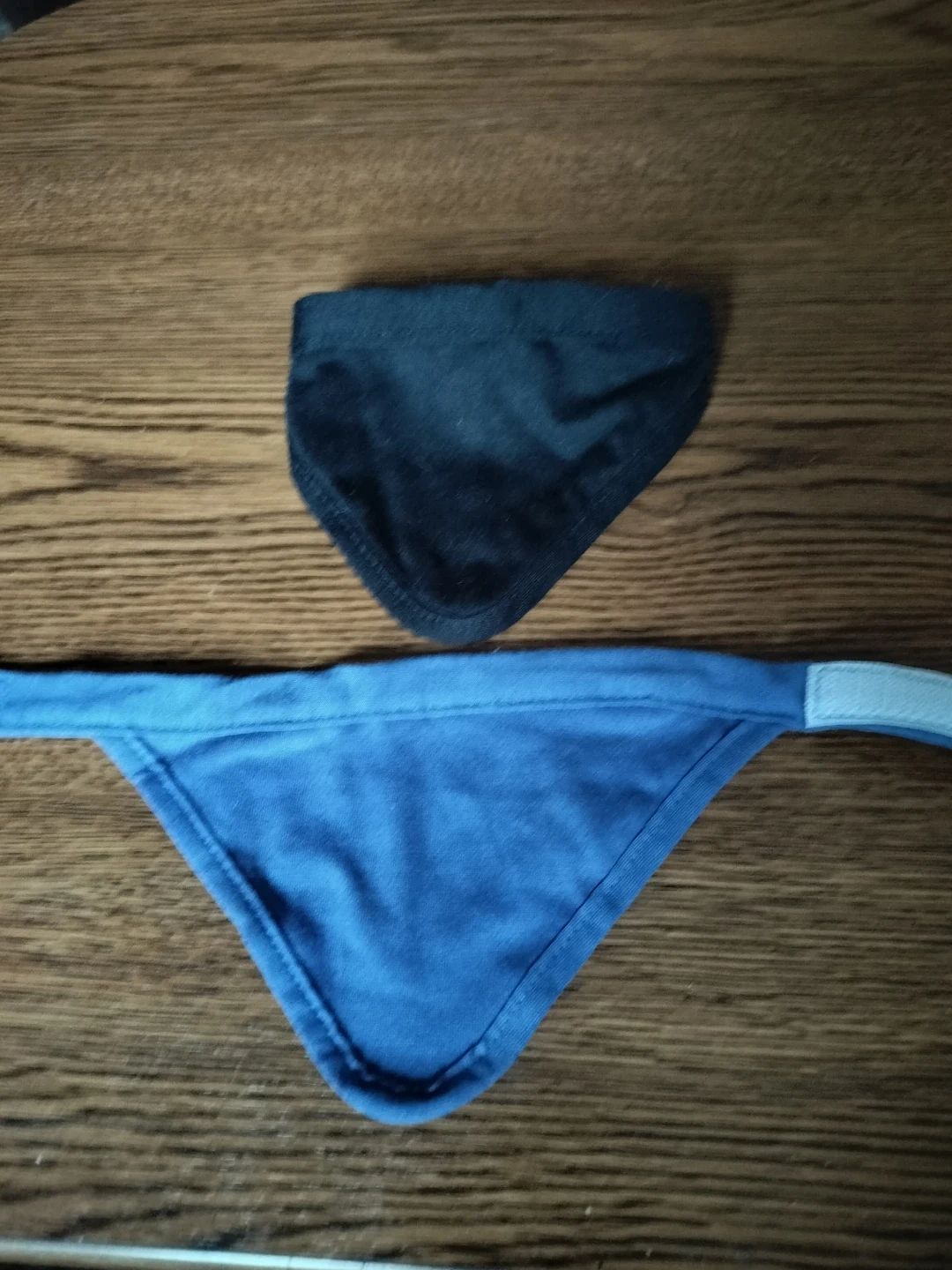 Two fabric bandanas for pets, one blue and one black. They're triangular shaped with finished edges. Each bandana features a white velcro strap for easy fastening.