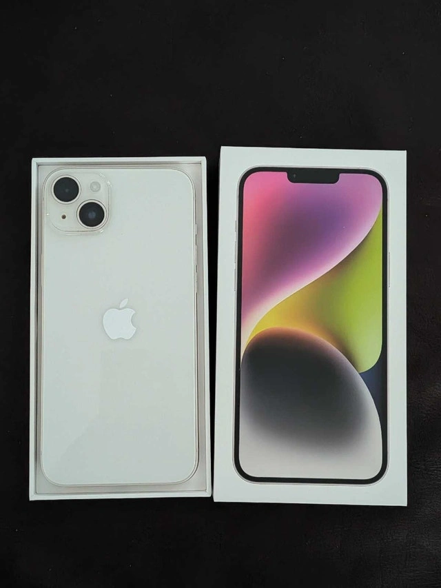 Pristine condition iPhone 14 Plus for sale with original box and charging cable.