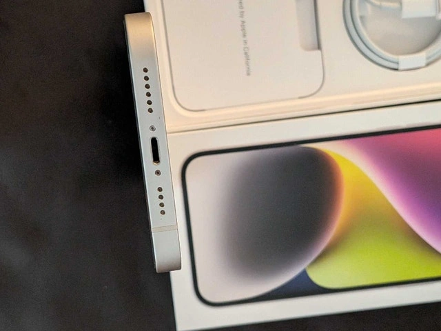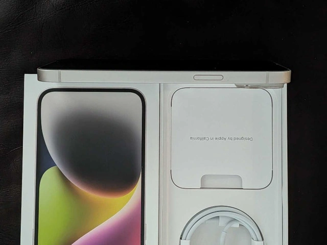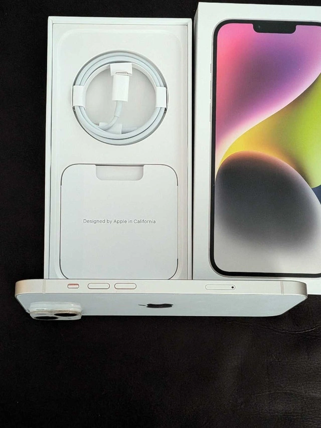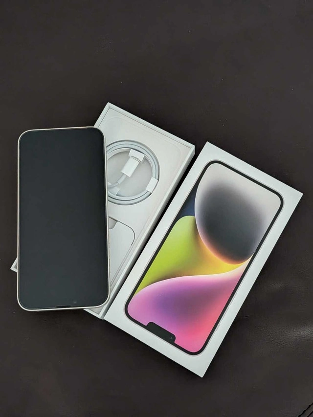 Pristine condition iPhone 14 Plus for sale with original box and charging cable.