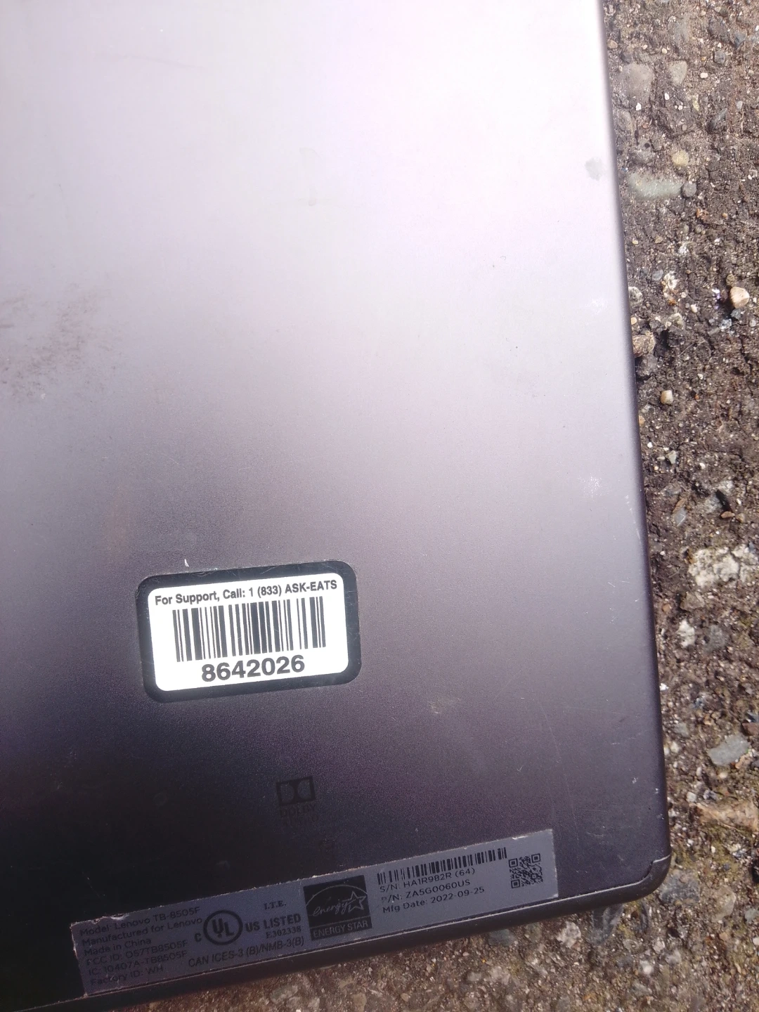 Manufactured for Lenovo, this TB-6505F tablet was made in China. Its manufacturing date is September 25, 2022. It supports Dolby Audio.