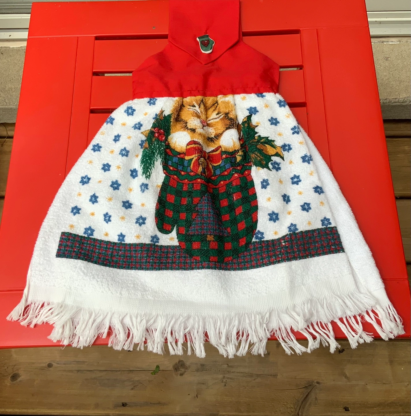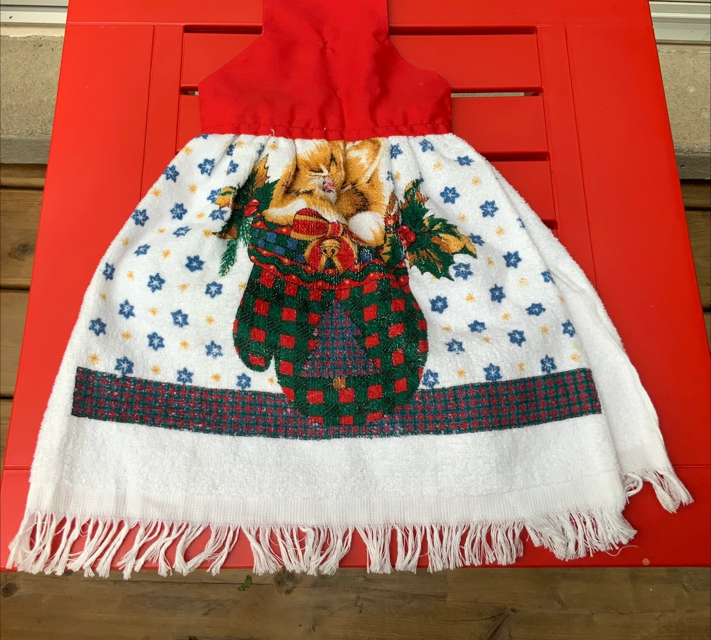 Handmade Christmas cat, Terry cloth kitchen, decorative towel